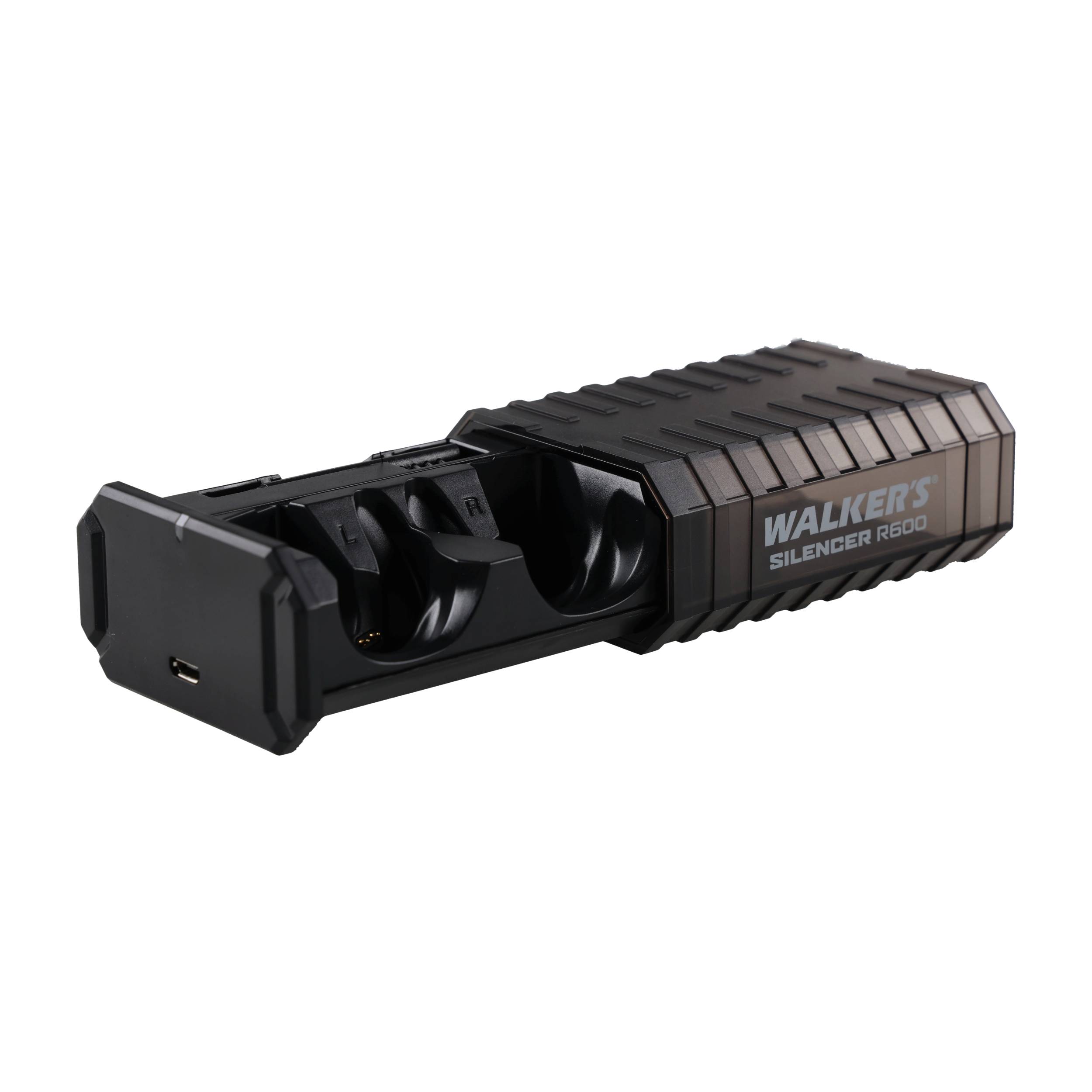Douszne ochronniki Walker's Silencer 2.0 R600 ładowane są za pomocą specjalnej stacji dokującej znajdującej się w zestawie, w której umieszcza się słuchawki. Pojemny, litowy akumulator umieszczony w stacji ładuje mniejsze wewnętrzne akumulatory umieszczone w słuchawkach. Dodatkowo stacja dokująca pewni również funkcję ochronną słuchawek, kiedy je transportujemy lub przechowujemy. Akumulator w stacji ładującej zasilany jest za pomocą portu micro USB. Wewnątrz stacji umieszczono również niewielką szczoteczkę służącą do czyszczenia ochronników słuchu.