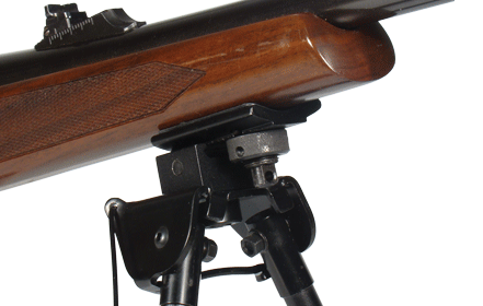 Bipod może być mocowany na szynie Picatinny, a po zastosowaniu znajdującego się w zestawie adaptera, również na standardowym bączku karabinowym.