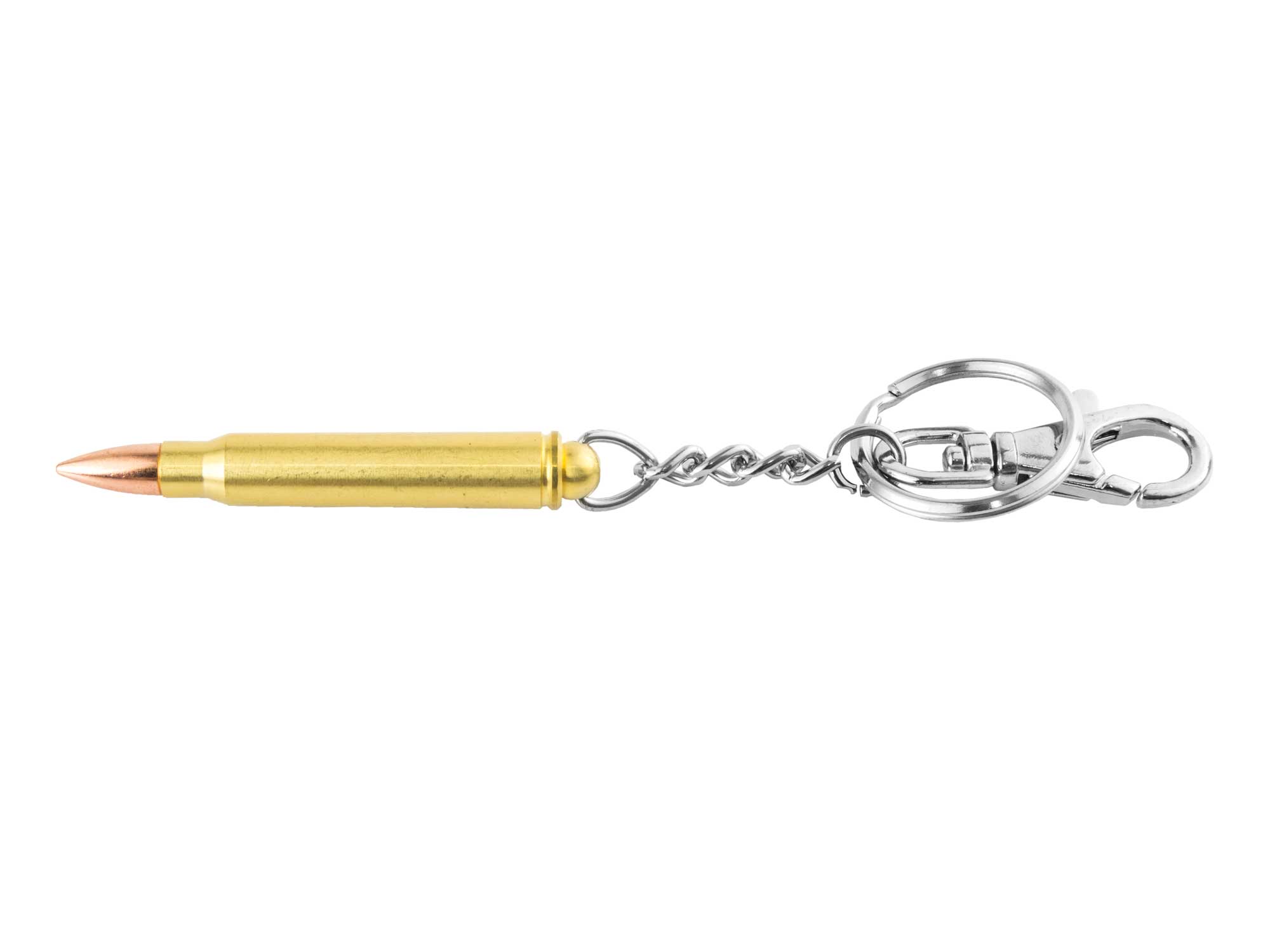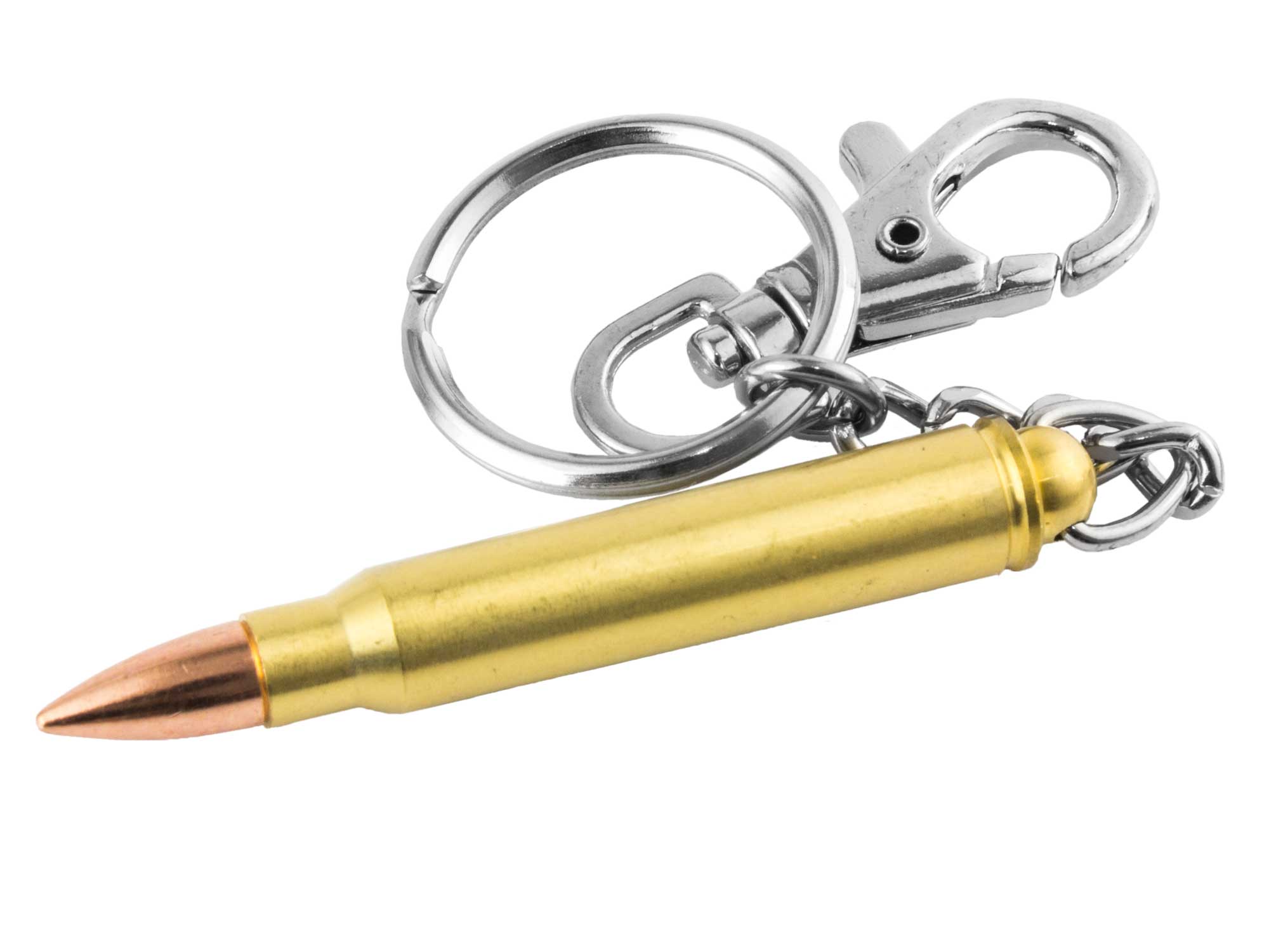 Metalowy breloczek do kluczy w kształcie naboju.