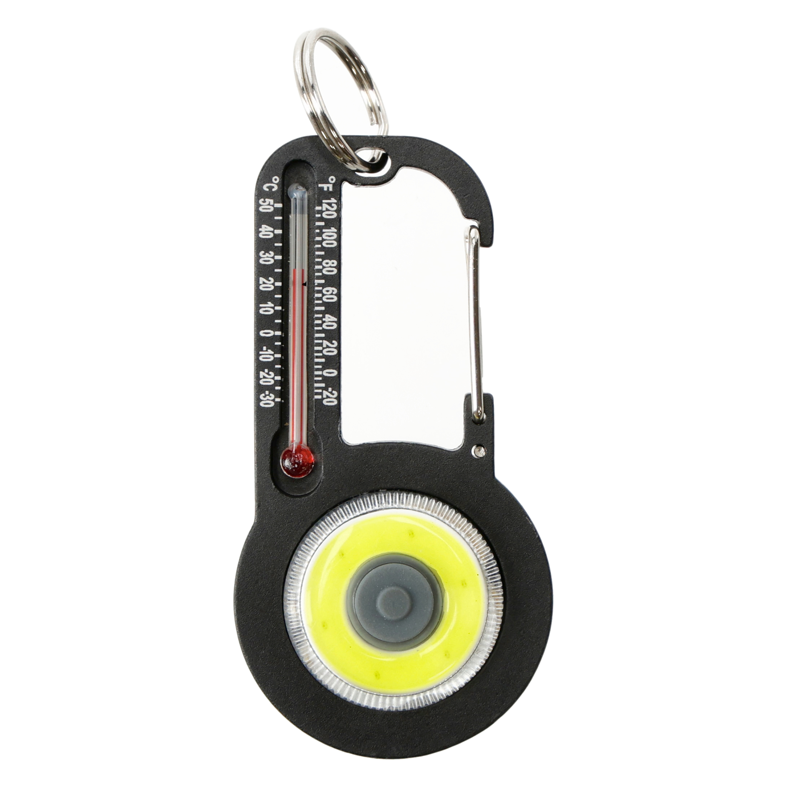 - Połączenie karabińczyka, latarki i termometru.