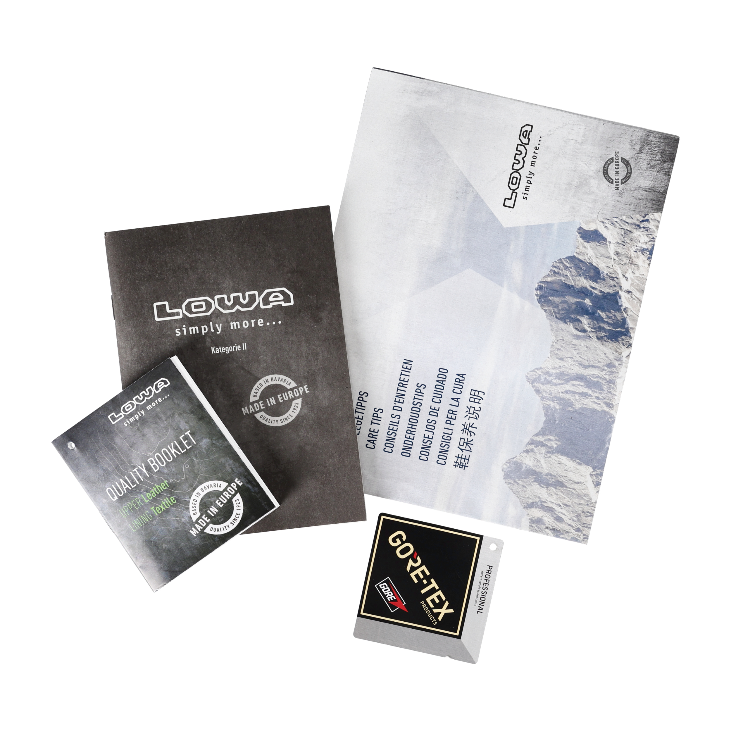 Buty mają cholewkę wykonaną z naturalnej skóry welurowej i mocnej, odpornej na uszkodzenia Cordury, co zapewnia wytrzymałość buta oraz wzmacnia odporność na uszkodzenia mechaniczne. Wewnętrzna wyściółka GoreTex zapobiega przedostawaniu się wody do środka buta, pozwalając jednocześnie na sprawne oddychanie stopy. Wkładka AirControl PU odprowadza wilgoć, ma właściwości antybakteryjne oraz zapewnia amortyzację na całej powierzchni stopy. Podeszwa Lowa CROSS jest antypoślizgowa, zapewnia stabilność na trudnych podłożach, ma także znakomite właściwości amortyzujące.