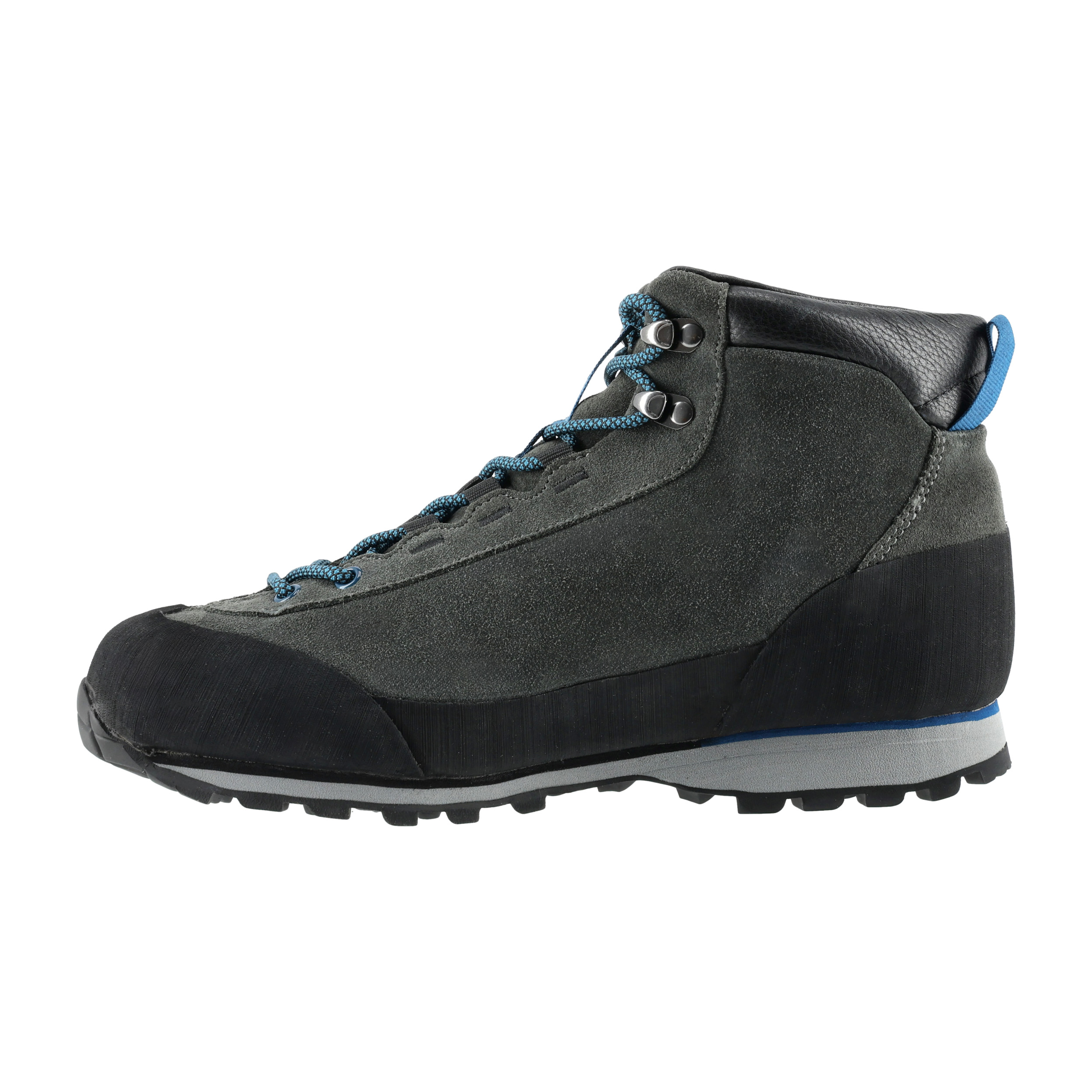 Cholewkę wykonano z wytrzymałej skóry zamszowej o grubości 1,6 mm. Materiał charakteryzuje się odpornością na ścieranie, a jednocześnie zapewnia elastyczność i wygodę. Buty wyposażono w gumowe wzmocnienia na przodzie, bokach i z tyłu, co zwiększa ich odporność na otarcia i uszkodzenia, szczególnie podczas kontaktu ze skałami czy korzeniami. Dzięki temu obuwie lepiej radzi sobie w trudnych terenach.