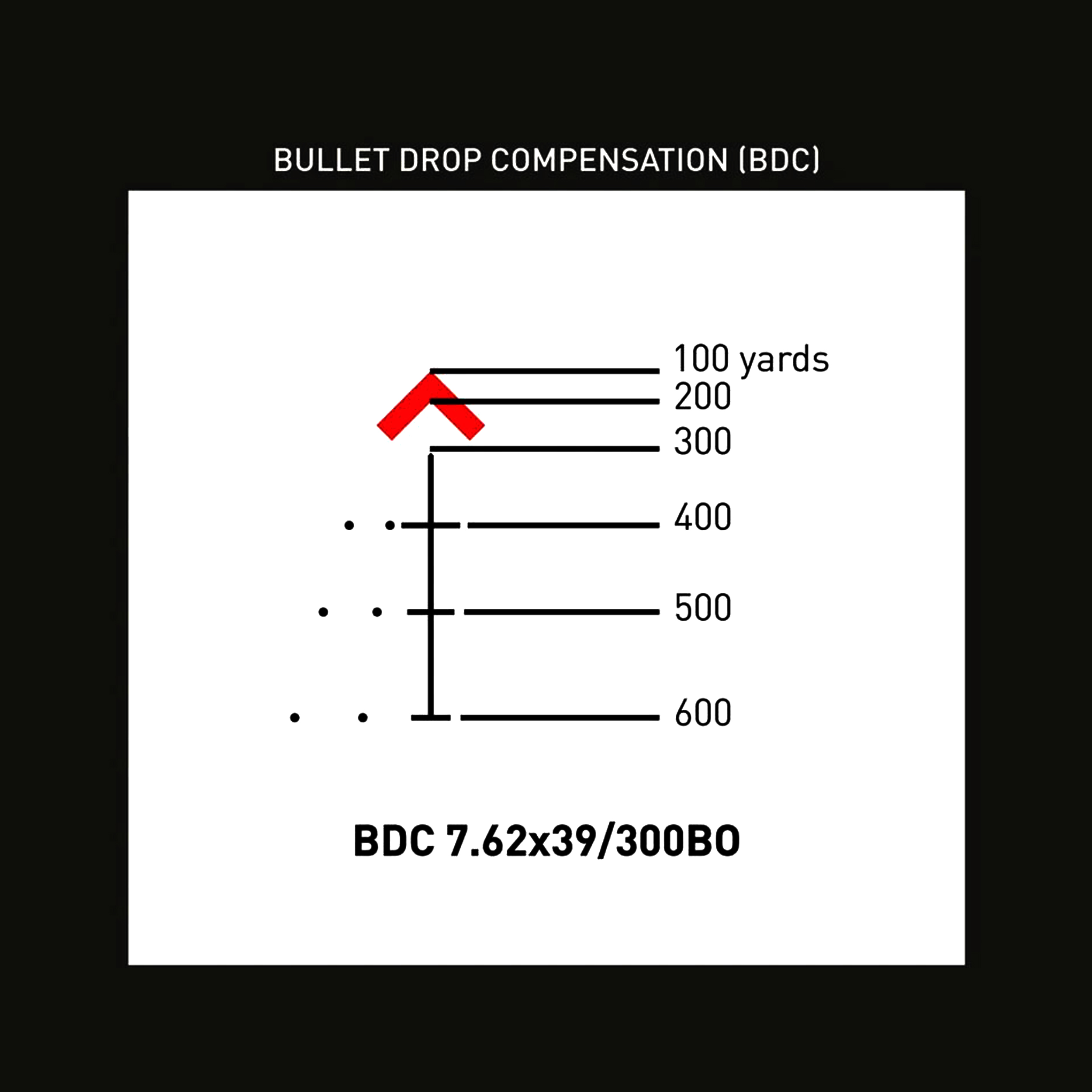 • opatentowana siatka celownicza ACSS Raptor wyskalowana do amunicji 7,62/.300BLK i wyrażona w jardach,