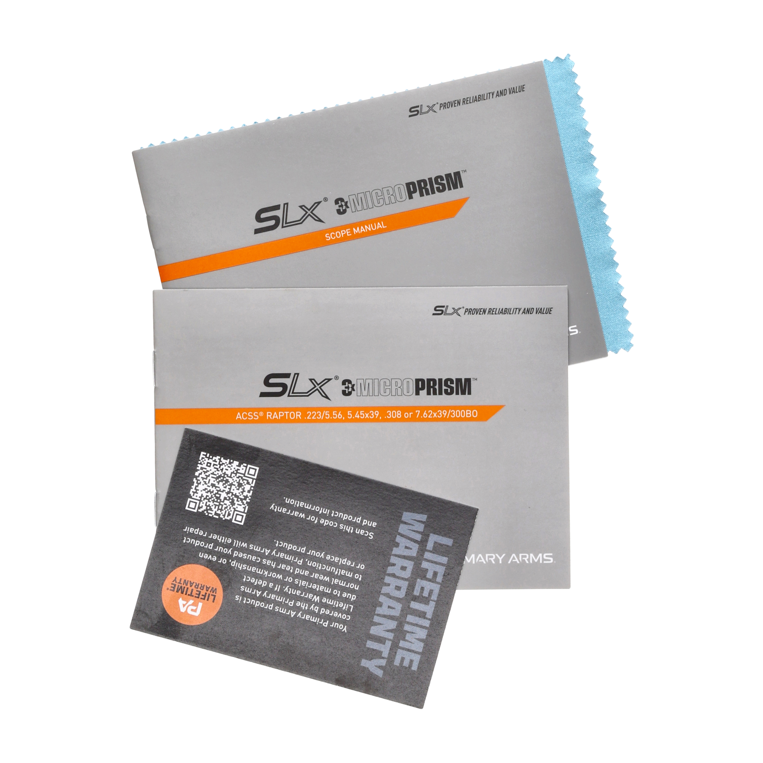 Primary Arms SLx 3X MicroPrism to kompaktowy celownik pryzmatyczny o 3× powiększeniu należący do cenionej linii Slx, która swoją reputację zawdzięcza niezawodności, innowacyjności oraz wspaniałemu stosunkowi jakości do ceny. Podczas testów polowych optyka Primary Arms była testowana na SCAR 17 .308 Win, z których wystrzelono ponad 7000 sztuk amunicji bez szwanku dla celowników. W Primary Arms SLx 3x zastosowano ulepszoną siatką celowniczą ACSS Raptor 7,62/.300 w jednostce metrycznej wytrawioną na szkle premium o niskiej dyspersji, oraz wzmocnioną bazę montażową gwarantującą sztywność i niezawodność mocowania na broni.