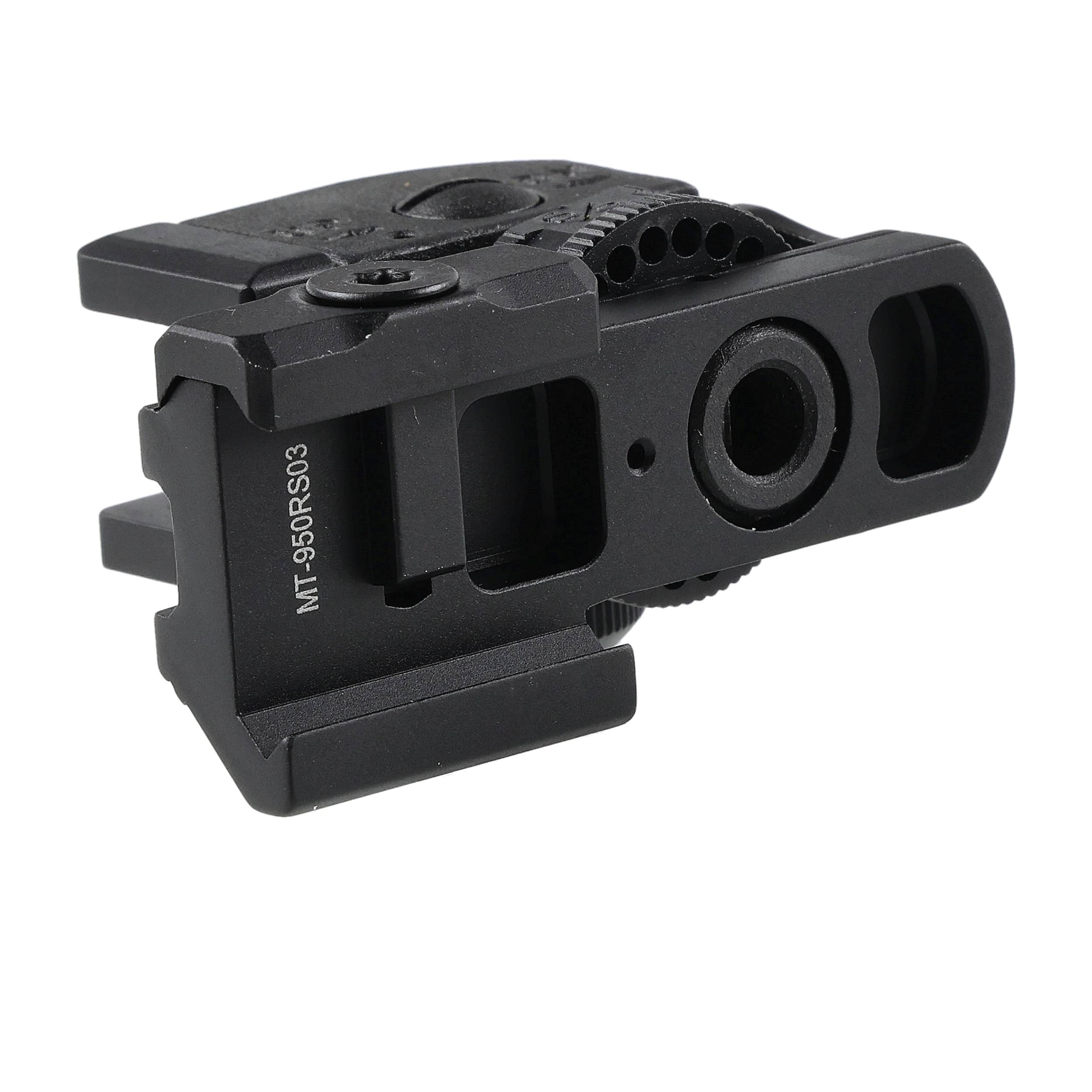 Celownik charakteryzuje się smukłym, ergonomicznym profilem oraz matowym czarnym wykończeniem, które jest trwałe i odporne na zużycie.