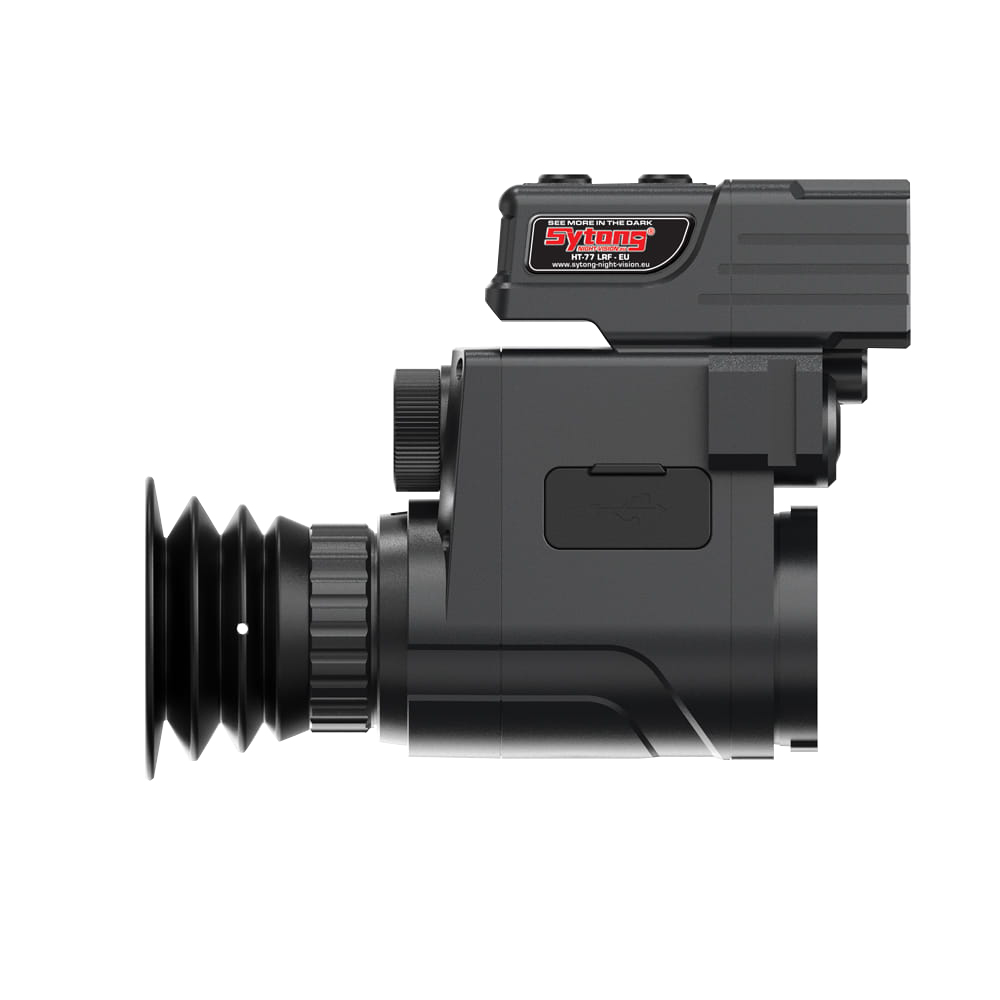 Sytong HT-77 LRF to cyfrowa nasadka noktowizyjna umożliwiająca obserwację zarówno za dnia, jak i w nocy, wyposażona w precyzyjny dalmierz laserowy o zasięgu pomiaru do 1000 m.