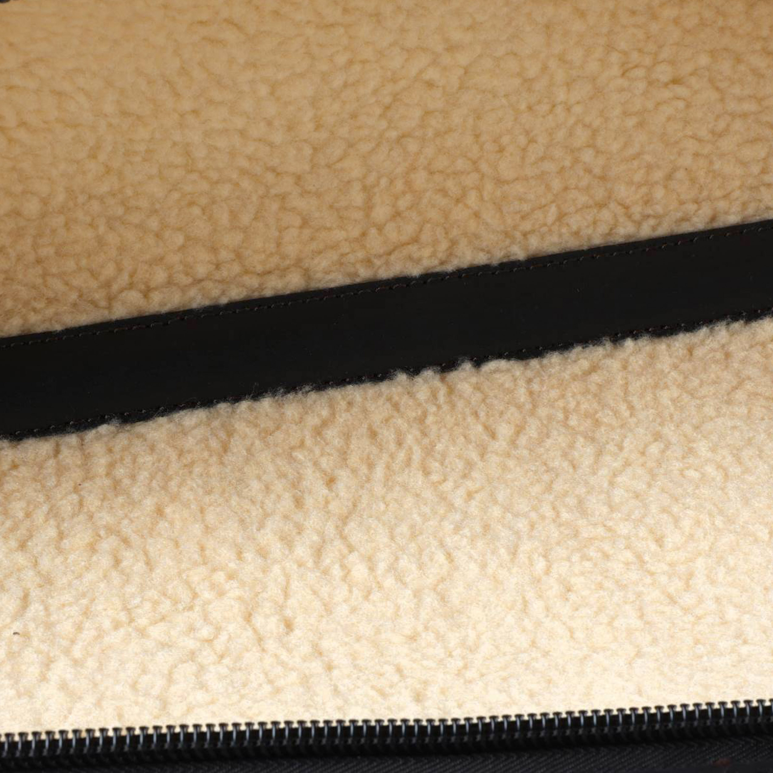- Wnętrze wyściełane jest materiałem imitującym sztuczne futro w kolorze białym.