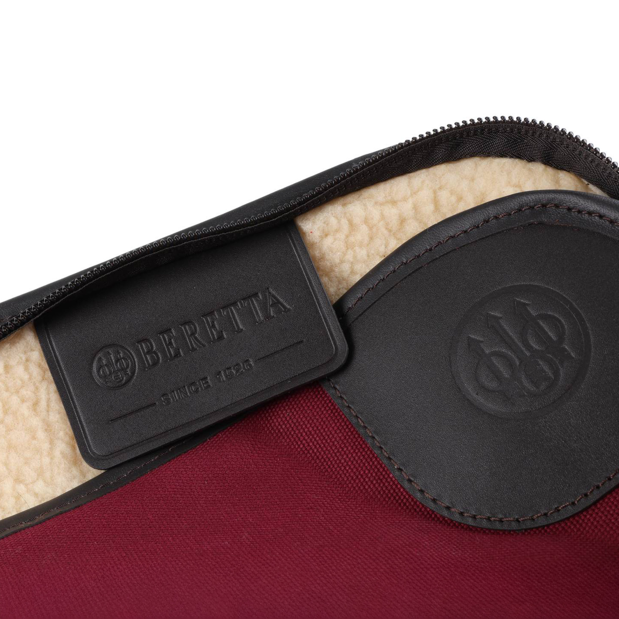Beretta Terrain EVO Canvas Cordovan to wygodny futerał wykonany z bawełnianego płótna wykończonego skórzanymi panelami. Służy do transportu strzelb oraz sztucerów myśliwskich, dobrze chroniąc zawartość podczas przenoszenia. Wewnętrzne ścianki wyściełano sztucznym futrem, które zapobiega zarysowaniu osady broni w razie upadku oraz zapobiega jej przemieszczaniu się wewnątrz. Futerał ma również elegancką, karminową stylistykę. Za zapięcie służą dwukierunkowe zamki SBS. Pokrowiec wyposażony jest w regulowany pas nośny na ramię.