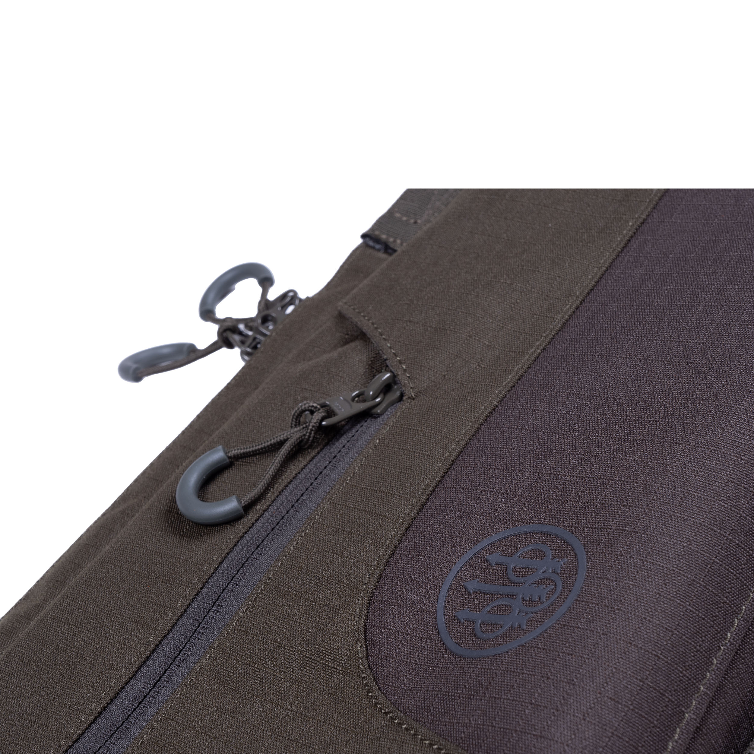 Estetyczna, niskoprofilowa forma pozwoli na wygodne przenoszenie broni oraz transport bez zajmowania zbędnej przestrzeni. Zastosowane materiały, jak i wzornictwo sprawiają, że pokrowiec na broń prezentuje się bardzo elegancko i doskonale współgra ze strzelbami Beretta. Dla zapewnienia wysokiego poziomu ochrony broni w ściankach pokrowca zastosowano wkładki z pianki EVA. Jest to materiał o doskonałych właściwościach tłumiących uderzenia, wykorzystywany między innymi w amortyzujących śródpodeszwach butów taktycznych i sportowych. Dostęp do wnętrza przedziału uzyskujemy za pomocą dwukierunkowego zamka błyskawicznego renomowanego producenta YKK. Dodatkowo na boku torby znajduje się kieszeń na akcesoria strzeleckie.