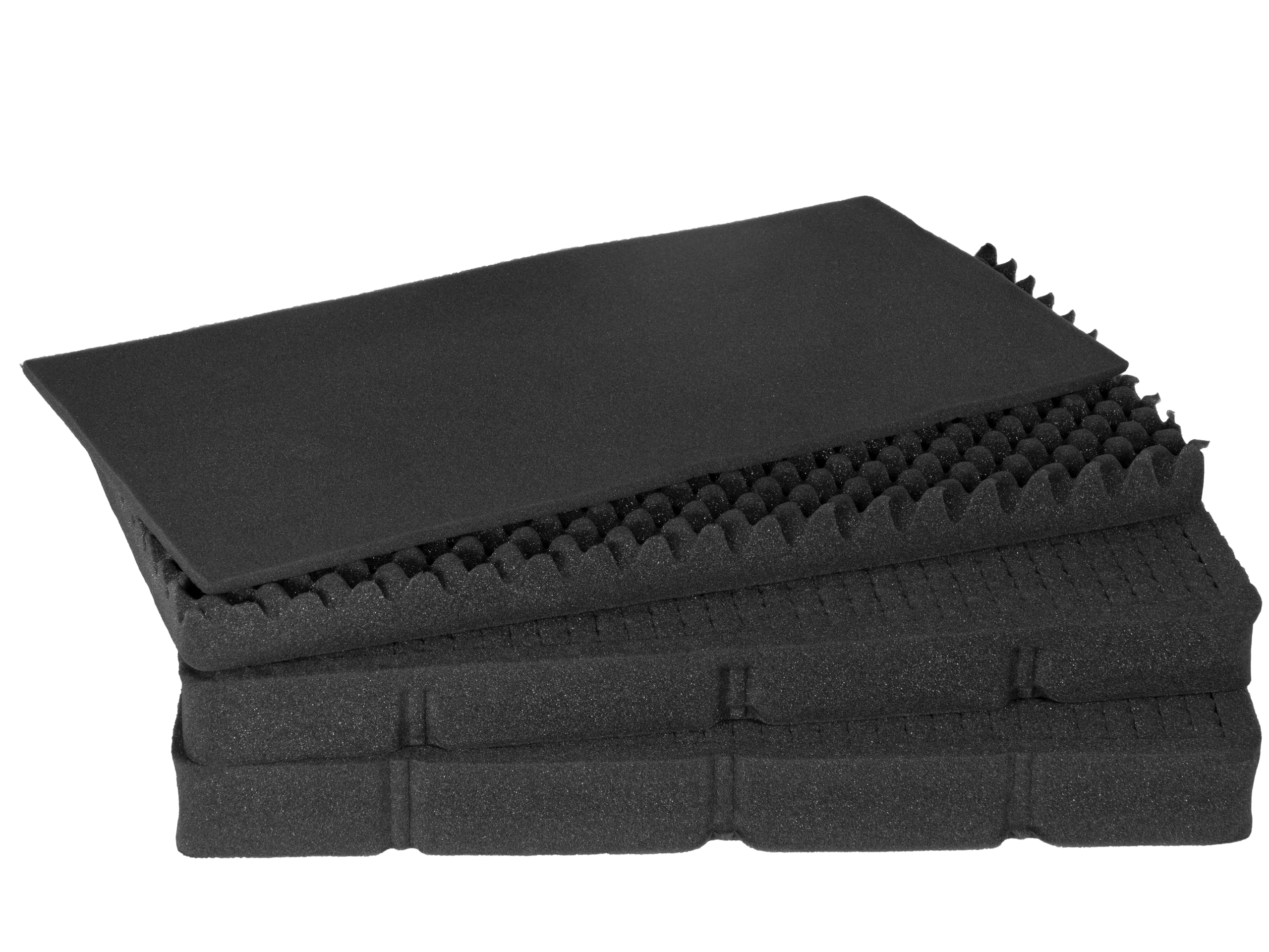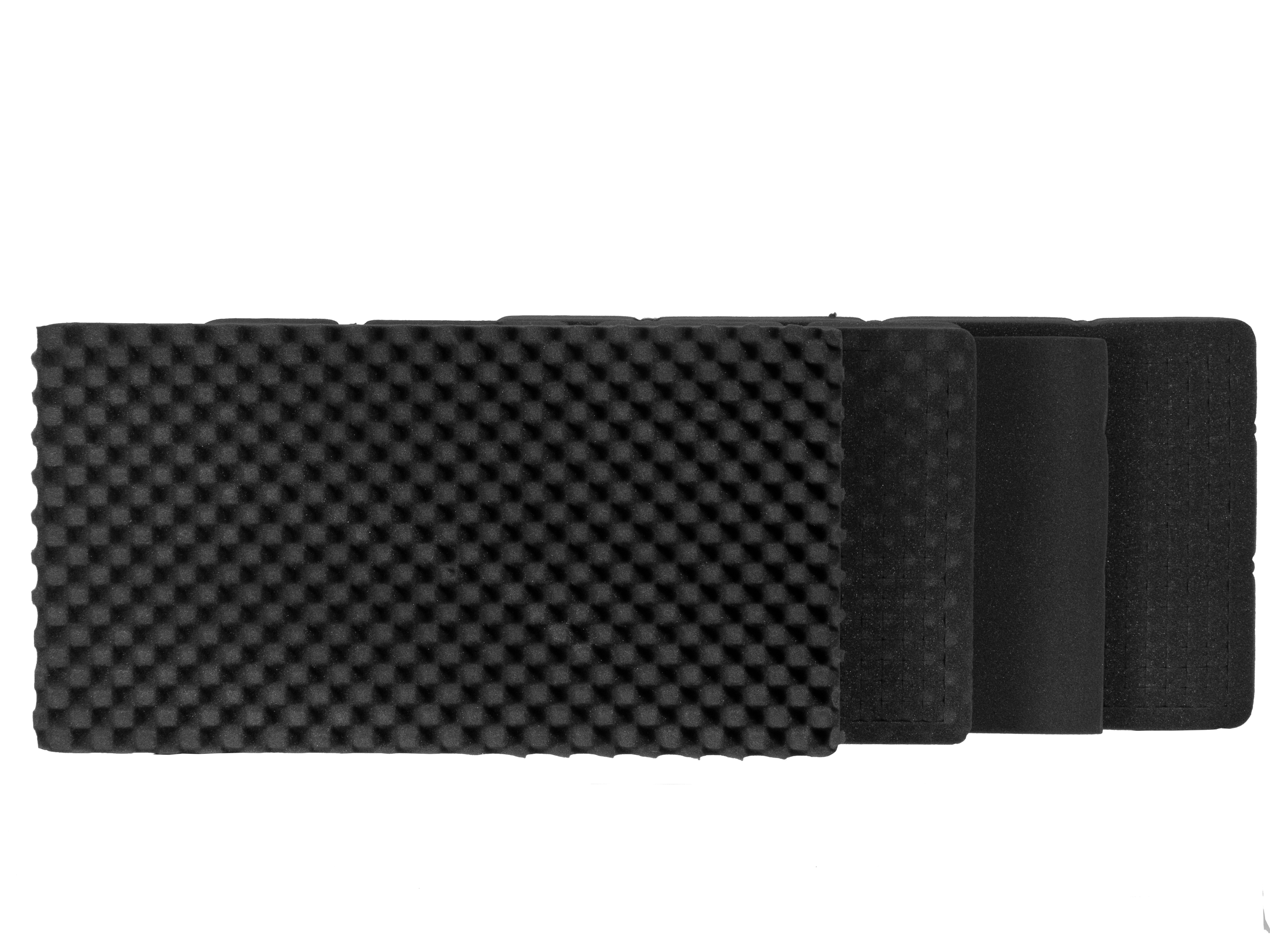 W odróżnieniu od zwykłej pianki typu„szczęki rekina” modułowy wkład piankowy pozwala na organizację przestrzeni transportowej dopasowaną do naszych indywidualnych potrzeb. Piankowe wkłady w formie kostek można w łatwy sposób usuwać, dzięki czemu przestrzeń transportową możemy precyzyjnie dopasować do konkretnej jednostki broni, aparatu lub elektroniki. Komplet wypełnienia składa się z 3 elementów: grubej gąbki modułowej, cienkiej gąbki (warstwa pośrednia) i górnej gąbki „szczęki rekina”. Wkłady przeznaczone do kufra Poseidon 60.