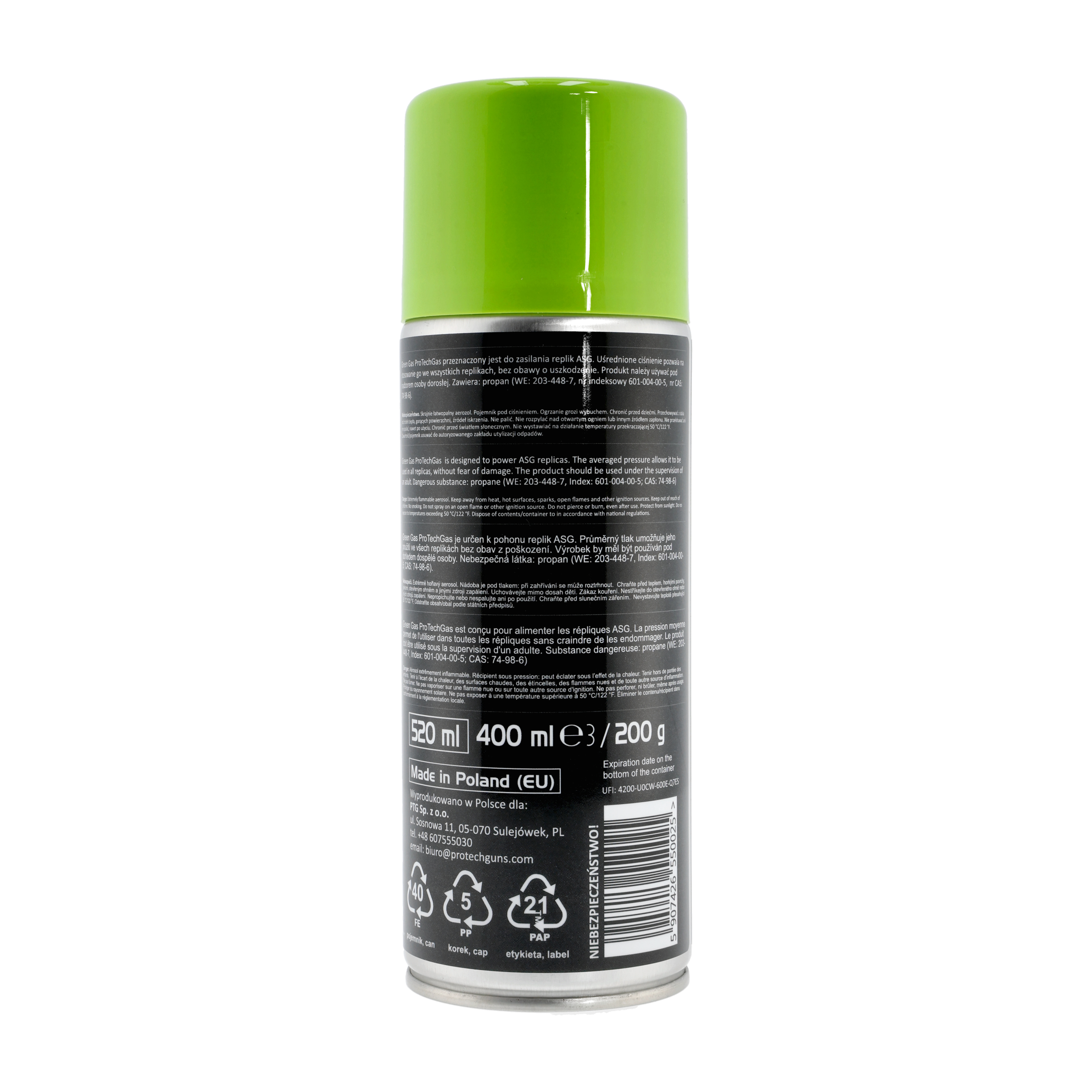 Green gas do zasilania replik Pro Tech Guns 520 ml