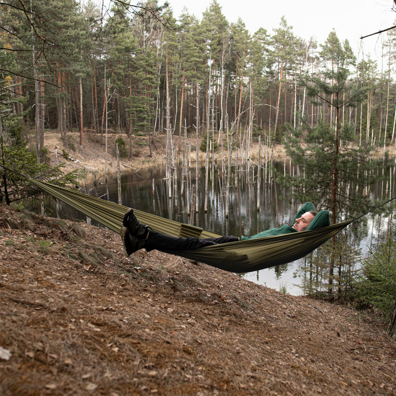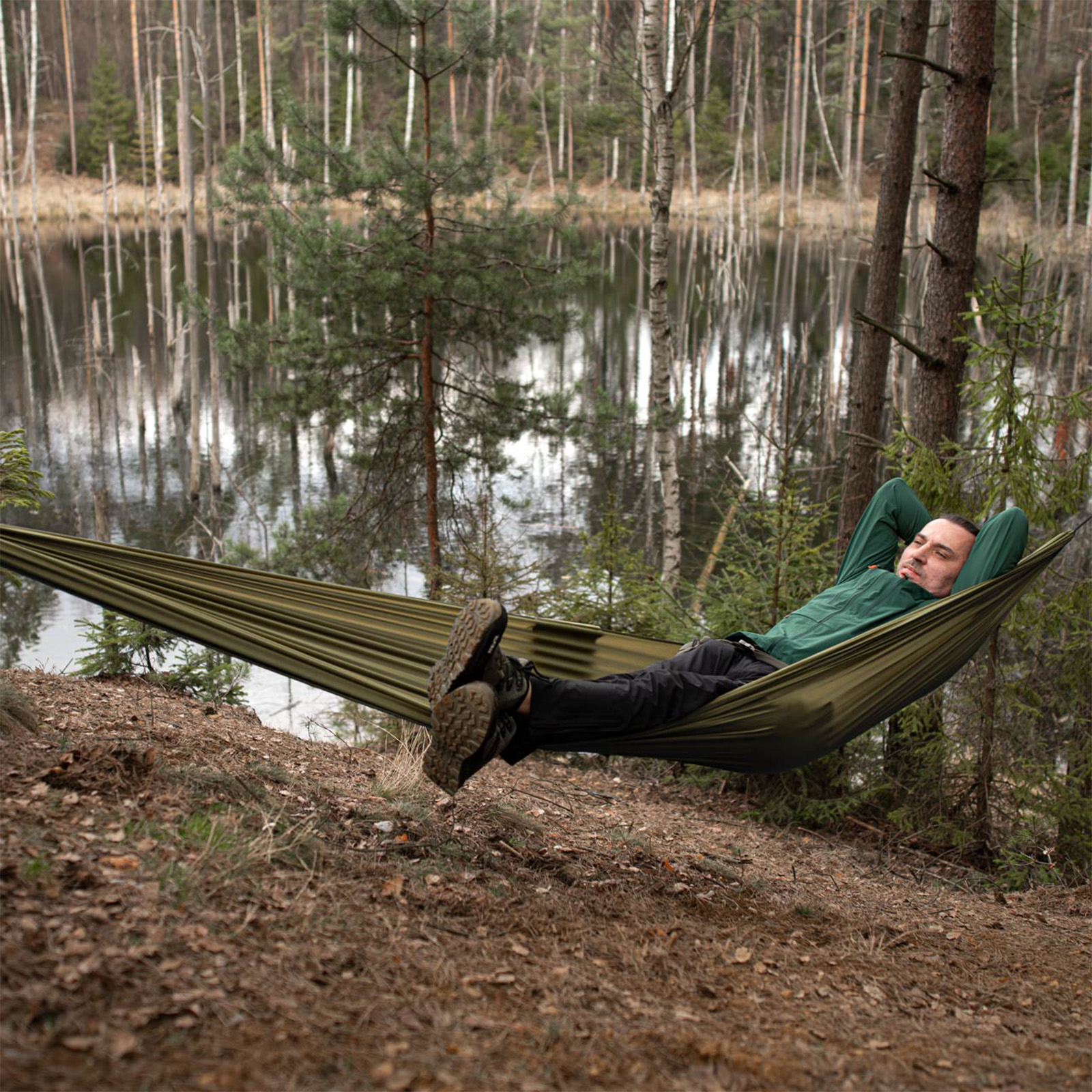 Hamak Camarasa zielony to sprzęt lekki i wytrzymały, stworzony z myślą o miłośnikach minimalistycznego stylu.