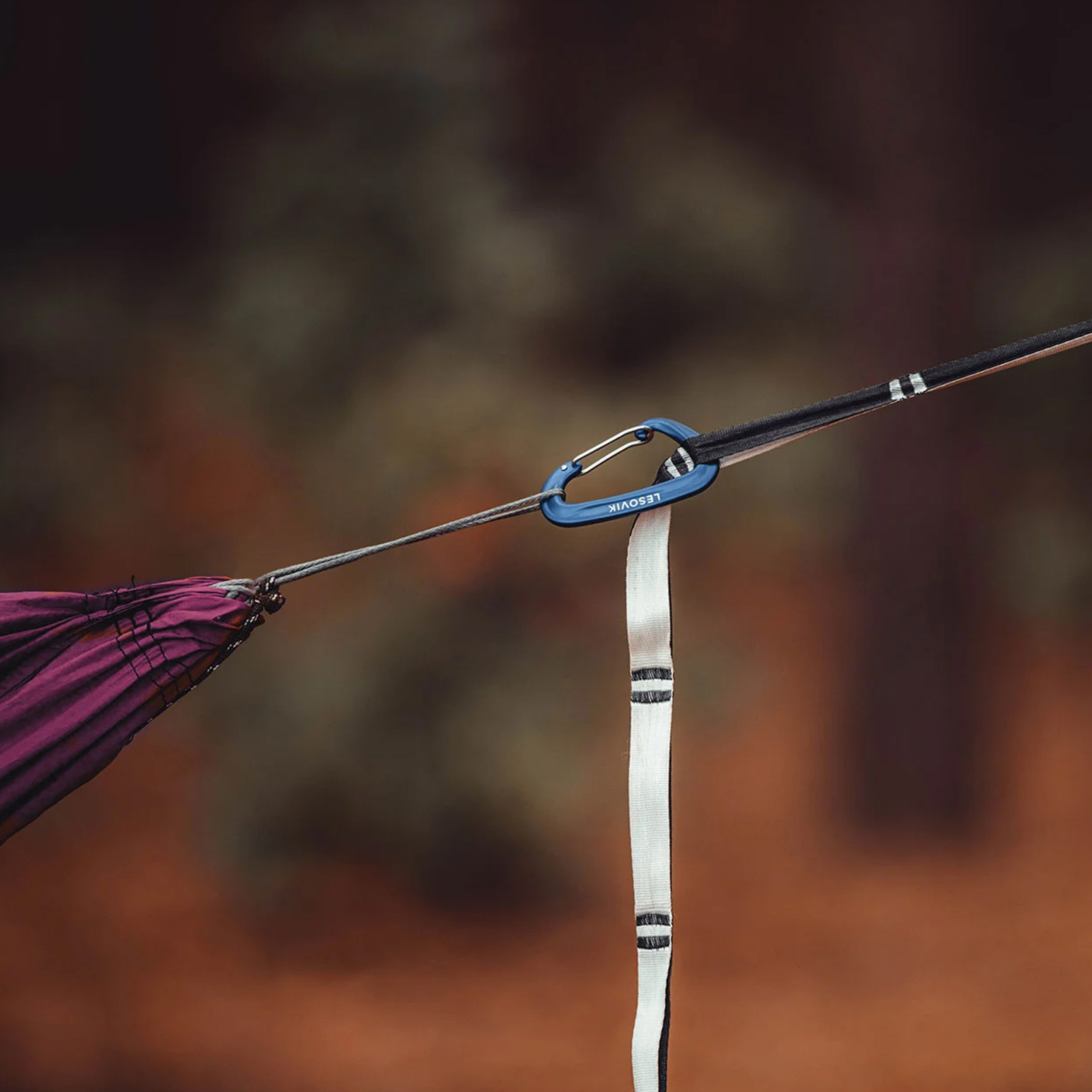 Wraz z hamakiem otrzymasz w pakiecie bezwęzłowy i uniwersalny system zawieszenia hamaka SNEKA. Przyspiesza on i ułatwia zawieszenie hamaka po zmroku oraz ze zmarzniętymi rękami. Dzięki pozbyciu się konieczności klasycznego wiązania, zostało zniwelowane do zera ryzyko niepewnego zawieszenia hamaka. Co więcej umożliwia ono pewien zakres regulacji nawet po zawieszeniu, co ułatwia dokładne dopasowanie noclegu do osobistych preferencji.