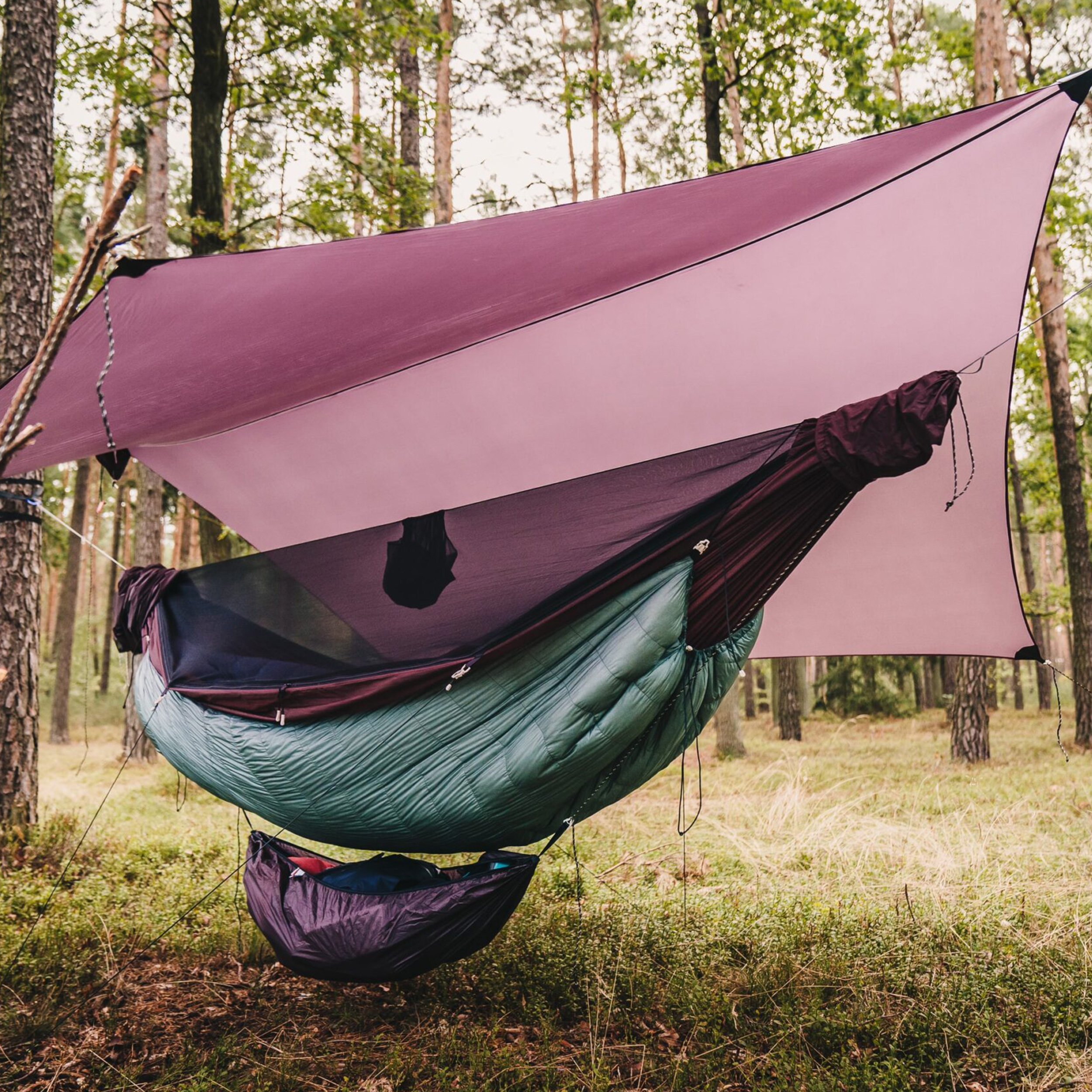 • Dwa pokrowce – jeden specjalnie na moskitierę, drugi na cały zestaw hamakowy.