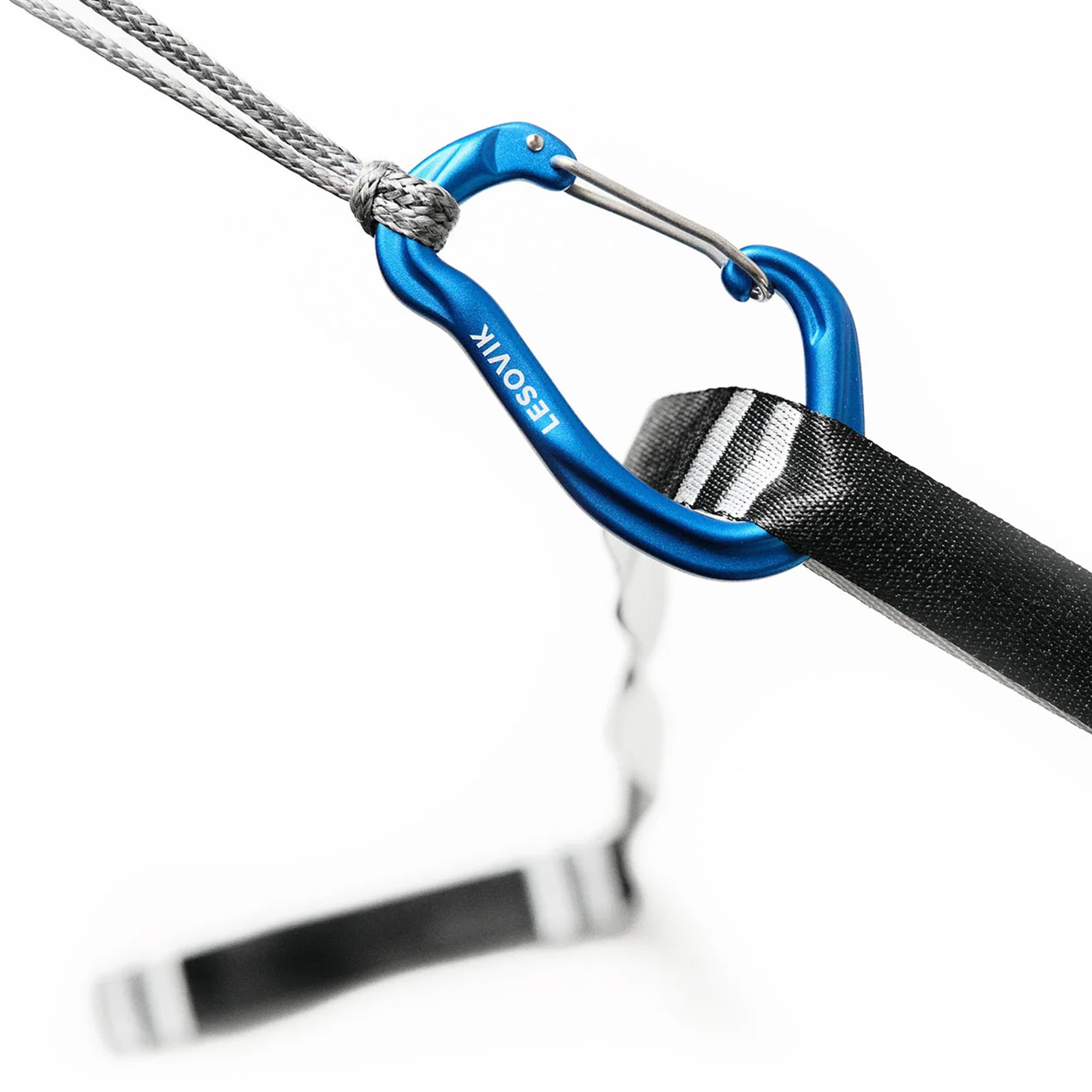 • Zastosowanie linek i taśm typu Dyneema oraz karabinków alumininiowych