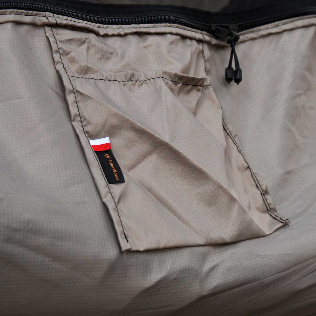 Hamak TigerWood Ważka V2 wykorzystuje wzmocnioną siatką ripstop tkaninę nylonową, gwarantującą te same korzyści wsparte zwiększoną odpornością na uszkodzenia. Materiał charakteryzuje się wysoką odpornością na rozciąganie, dzięki czemu bez problemu utrzyma ciężar do 275 kg. Charakteryzuje się przy tym niską masą oraz dobrą oddychalnością, dzięki czemu będzie komfortowy zarówno w transporcie jak i podczas użytkowania. Umieszczona na boku hamaka kieszonka umożliwi przechowanie pod ręką kluczowych akcesoriów. Zintegrowana moskitiera została natomiast wyposażona w cięciwy, które pozwalają na jej odpowiednie napięcie dla komfortu użytkownika.