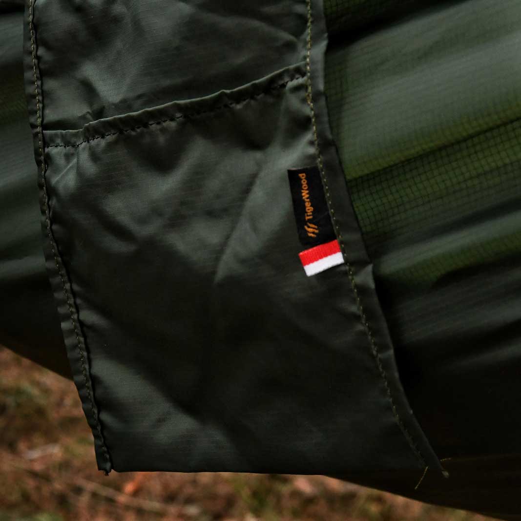 Hamak TigerWood Ważka V2 wykorzystuje wzmocnioną siatką ripstop tkaninę nylonową, gwarantującą te same korzyści wsparte zwiększoną odpornością na uszkodzenia. Materiał charakteryzuje się wysoką odpornością na rozciąganie, dzięki czemu bez problemu utrzyma ciężar do 275 kg. Charakteryzuje się przy tym niską masą oraz dobrą oddychalnością, dzięki czemu będzie komfortowy zarówno w transporcie jak i podczas użytkowania. Umieszczona na boku hamaka kieszonka umożliwi natomiast przechowanie pod ręką kluczowych akcesoriów.
