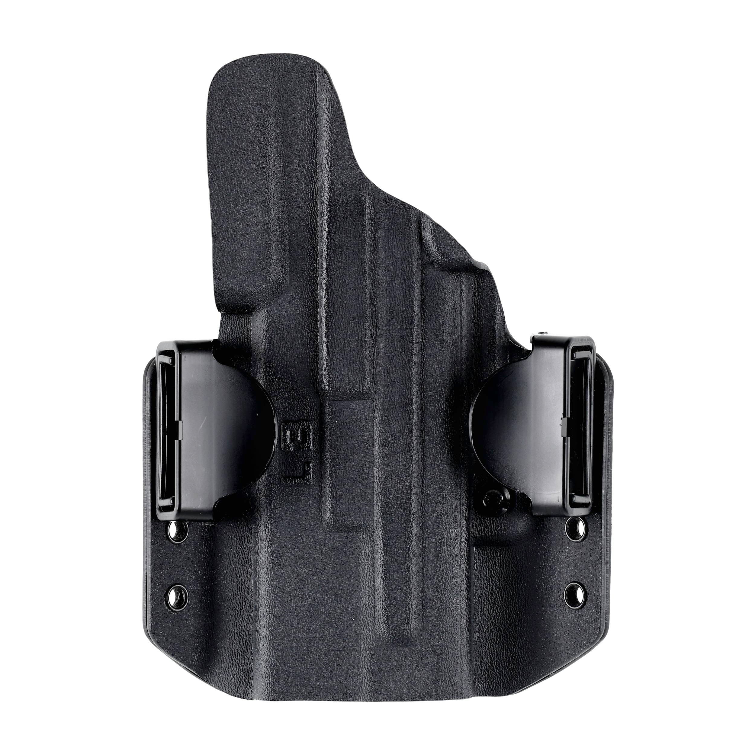 Wysokiej jakości kydexowa kabura przeznaczona do użytkowania z pełnowymiarowymi oraz kompaktowymi pistoletami Glock w kalibrach do .40 S&W wyposażonymi w trenażery strzeleckie Mantis X2, X3 oraz X10. Kabura znacząco rozszerza perspektywy treningu, umożliwiając praktykowanie szybkich dobyć broni oraz transferów z broni długiej na krótką. Co istotne, kabura nie wymaga zamontowania urządzenia aby zapewniać poprawną retencję – poza treningiem możemy używać jej w charakterze standardowego kydexowego modelu, zapewniającego bezpieczeństwo, trwałość oraz wygodę dobycia broni.