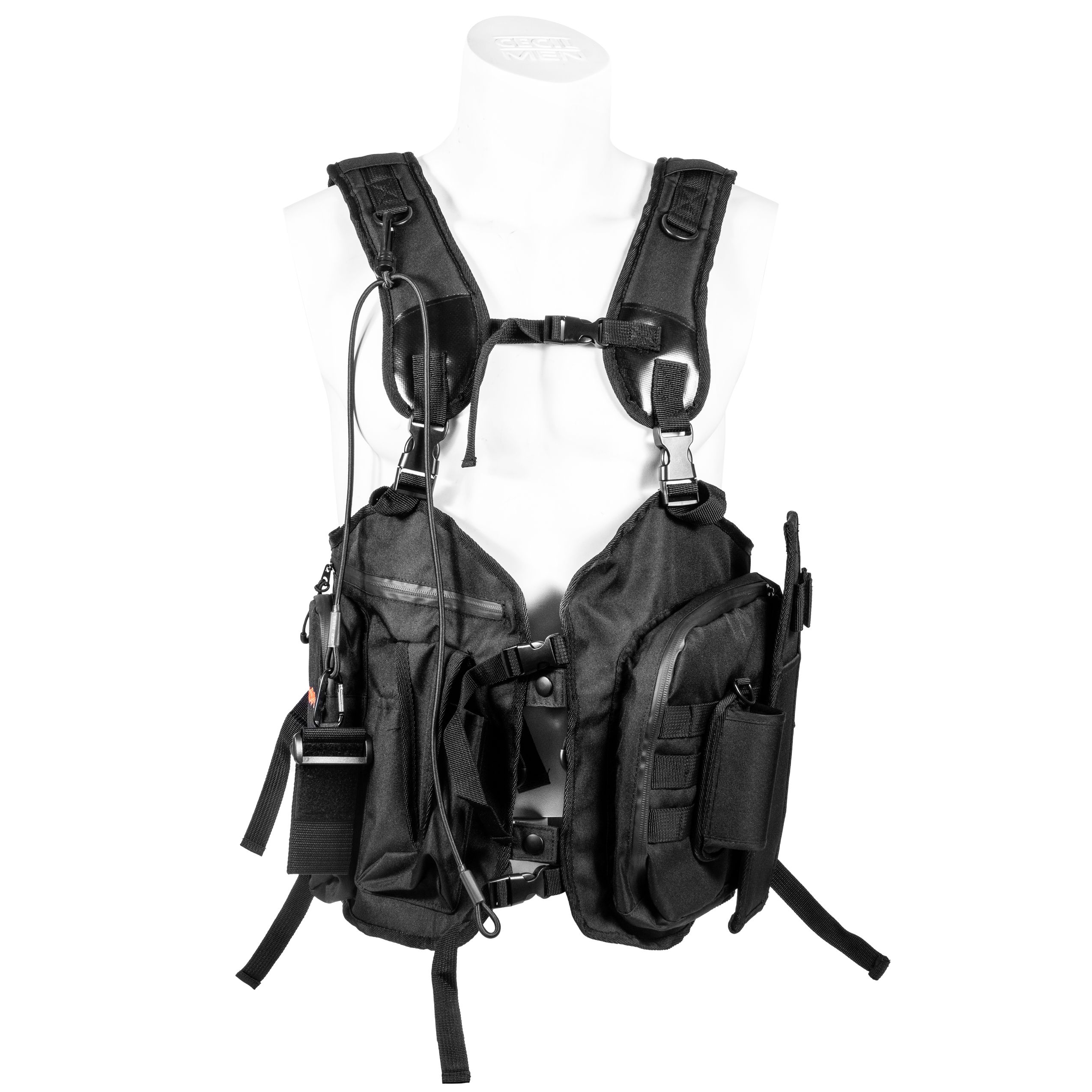 Oprócz obustronnego systemu bungee kamizelka ma także miękkie, wyściełane szelki, które zapewniając komfort i równomierne rozłożenie ciężaru ekwipunku. Szelki mają szeroki zakres regulacji (do rozmiaru 4XL), który umożliwia dopasowanie rozmiaru do klatki piersiowej, bioder i talii.