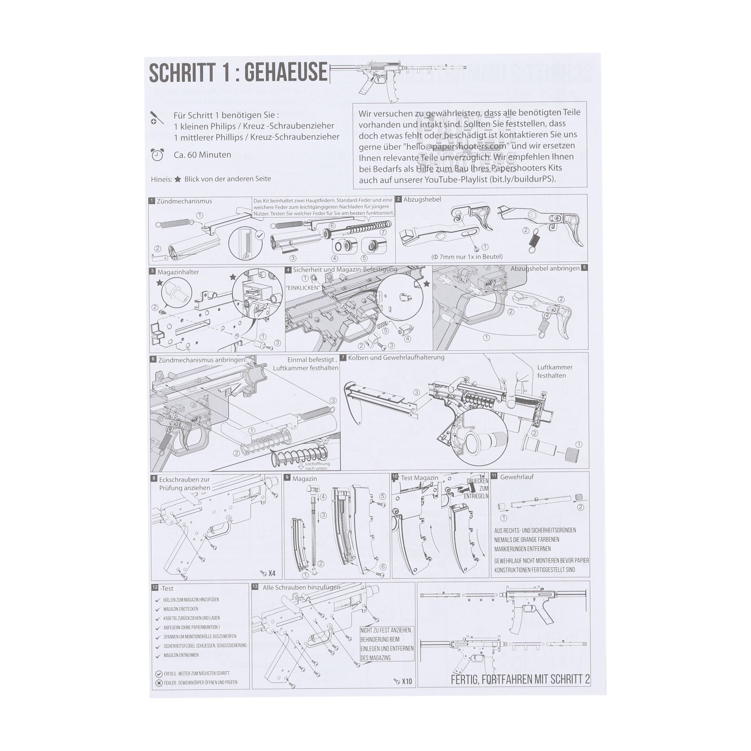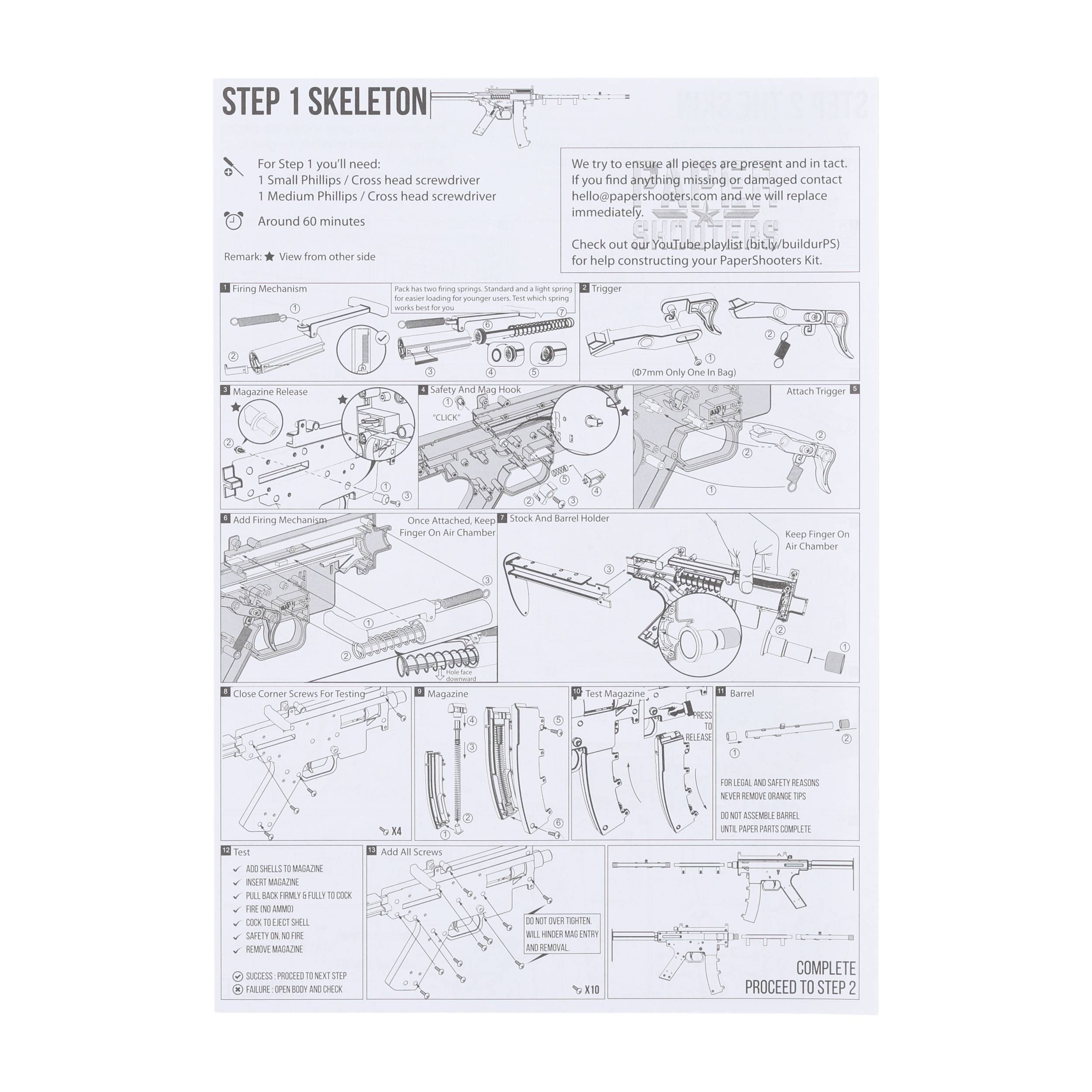 Karabin Paper Shooters Green Spit jest wykonany z polimeru oraz elementów kartonowych, które przy użyciu kleju możemy łączyć i modyfikować, nadając zabawce ostateczną formę. Model wykorzystuje magazynki oraz atrapy łusek dla zwiększenia realizmu i wymaga każdorazowego przeładowania w celu ekstrakcji łuski.
