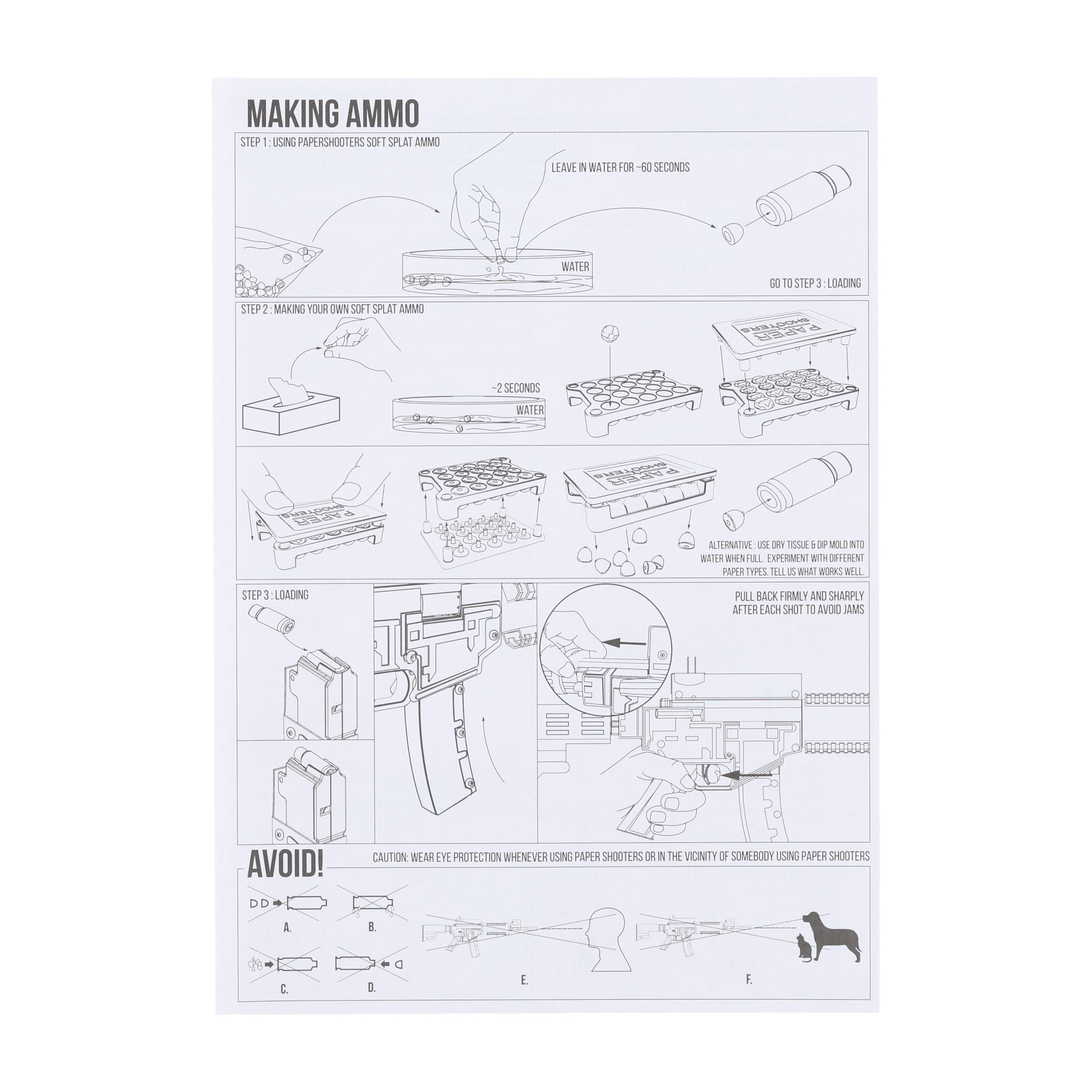 Karabin Paper Shooters Zombie Slayer to unikalna zabawka do samodzielnego złożenia, która umożliwia strzelanie papierowymi kulami na dystansie do 15 metrów. To bezpieczny w użytku model dla najmłodszych miłośników militariów oraz wszystkich dzieci, które lubią aktywnie spędzać czas w domu i na świeżym powietrzu.