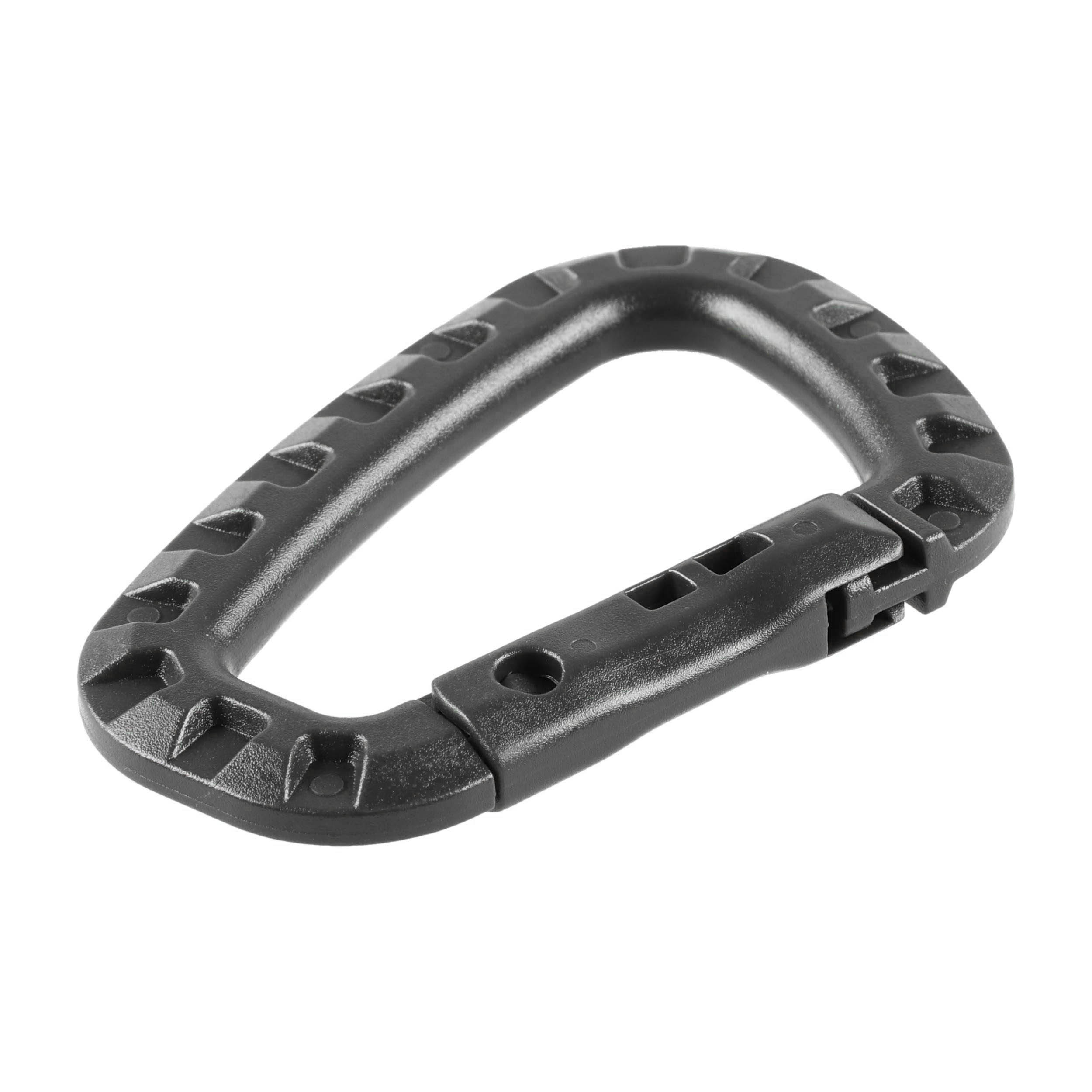 Lekki karabińczyk M-Tac Tactical w kolorze czarnym przeznaczony do szybkiego i łatwego mocowania elementów oporządzenia. Konstrukcja karabińczyka przystosowana jest do standardu MOLLE / PALS i ma dwa mocowania, co ułatwia montaż na wielu elementach wyposażenia taktycznego np. kamizelkach czy szelkach oporządzeniowych.