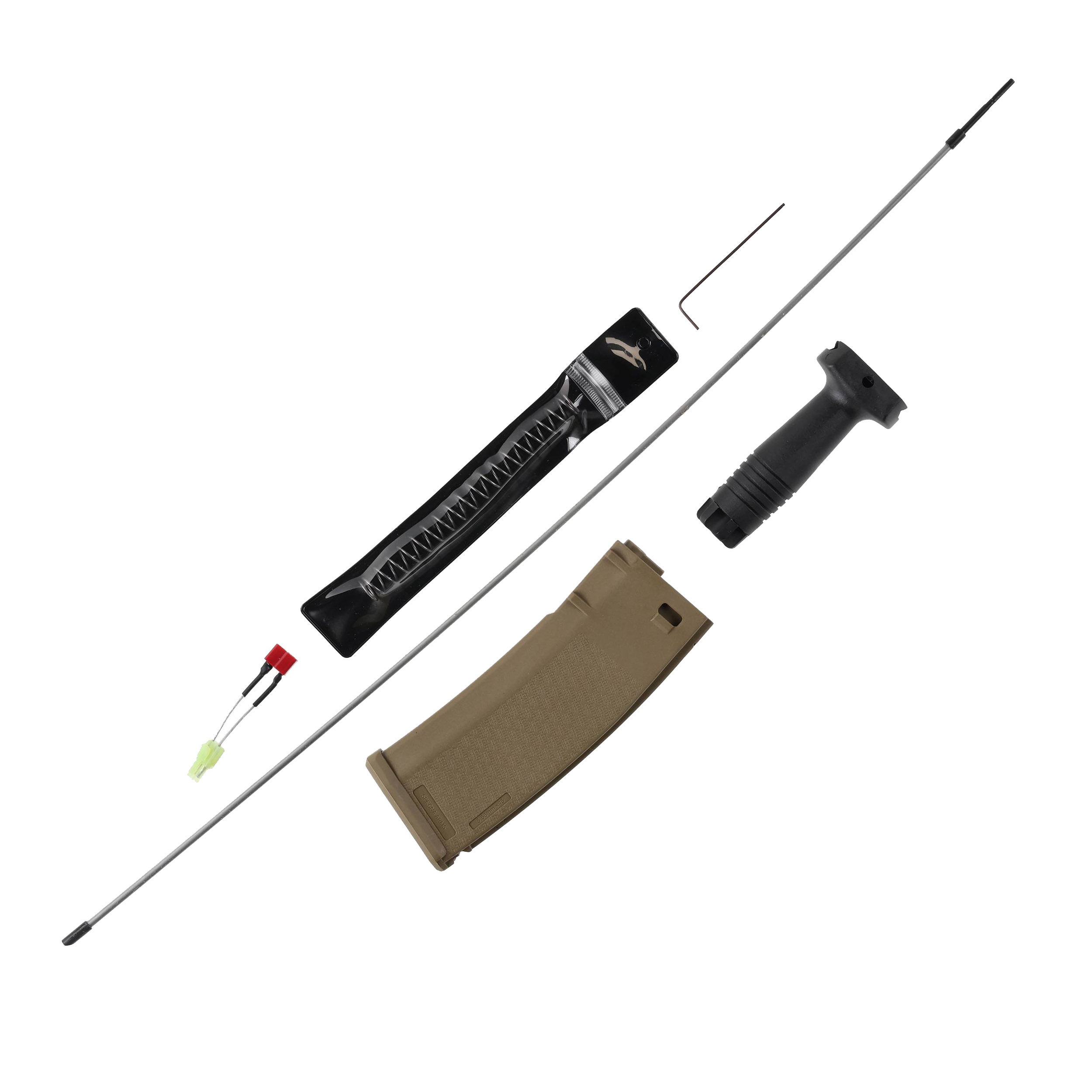 Zawartość zestawu: 2 x magazynki Mid-Cap S-MAG, dodatkowa sprężyna główna M90, chwyt pionowy, certyfikat autentyczności Daniel Defense / EMG Arms.