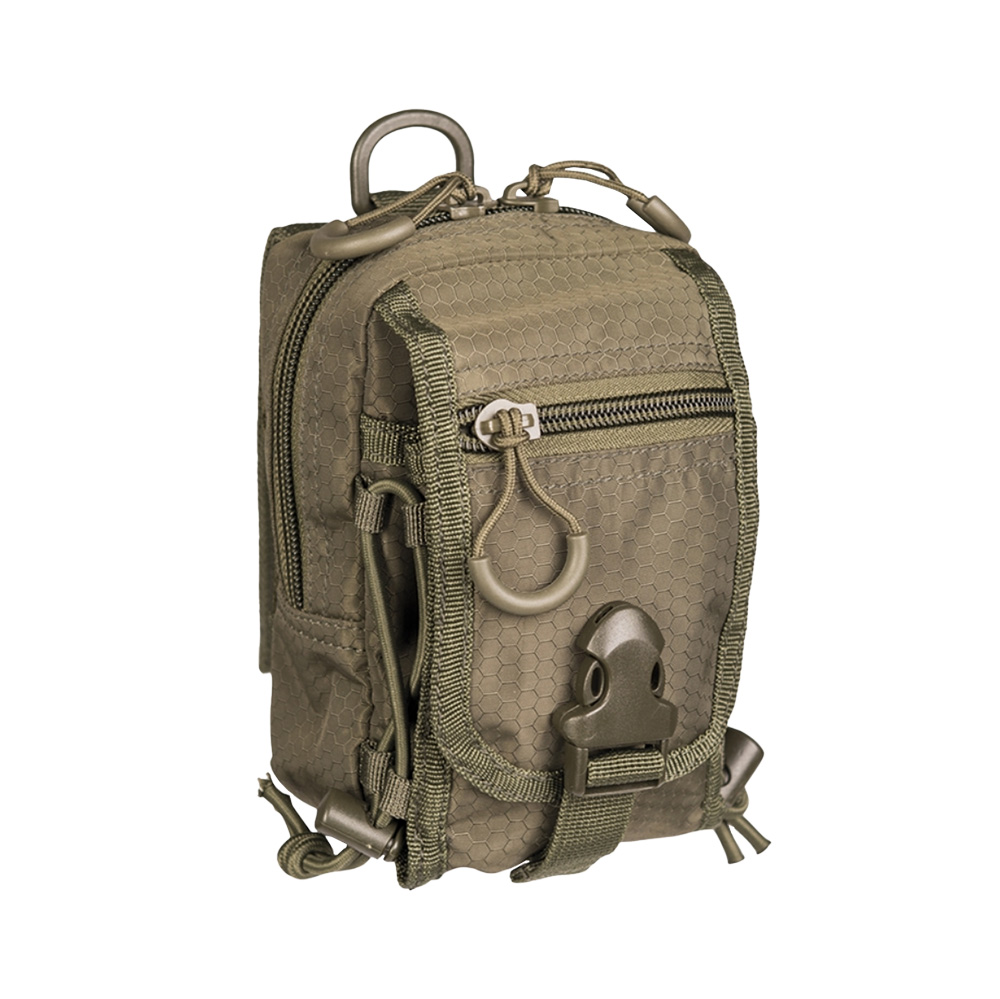 Uniwersalna kieszeń Hextac Belt Pouch od niemieckiej firmy Mil-Tec powstała z trwałego poliestru pokrytego powłoką PVC zapewniającą wodoodporność. Kieszeń umożliwia na łatwe i zorganizowane przenoszenie niewielkich przedmiotów takich jak: scyzoryk, multitool czy latarka lub urządzeń elektronicznych niezastąpionych w codziennym funkcjonowaniu.