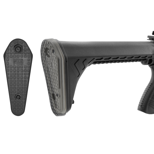 Kolbę UTG Pro AR15 Ops Ready S5 wykonano ze wzmacnianego polimeru, tworzywa odpornego na warunki atmosferyczne, uszkodzenia mechaniczne oraz działanie środków do broni. Kolba Leapers S5 ma lekki, smukły korpus o długości 280 mm zwiększający odcinek punktu podparcia od spustu (Lenght of pull). Stała kolba Leapers S5 dedykowana jest do karabinów AR15 z długą tubą buffera (Rifle-length), która wykorzystywana jest do montażu standardowej kolby A2. Montaż kolby S2 nie wymaga stosowania podkładki dystansowej.
