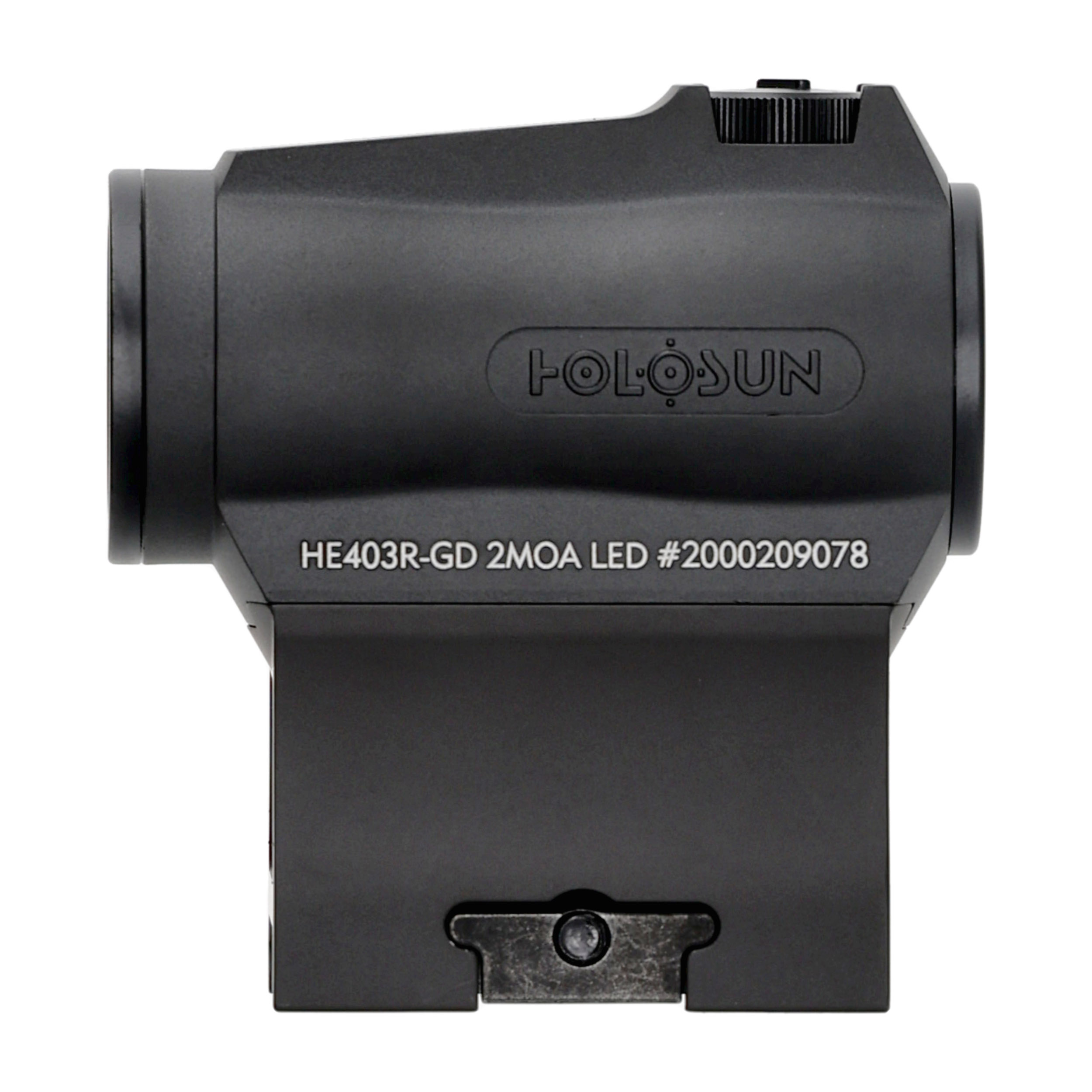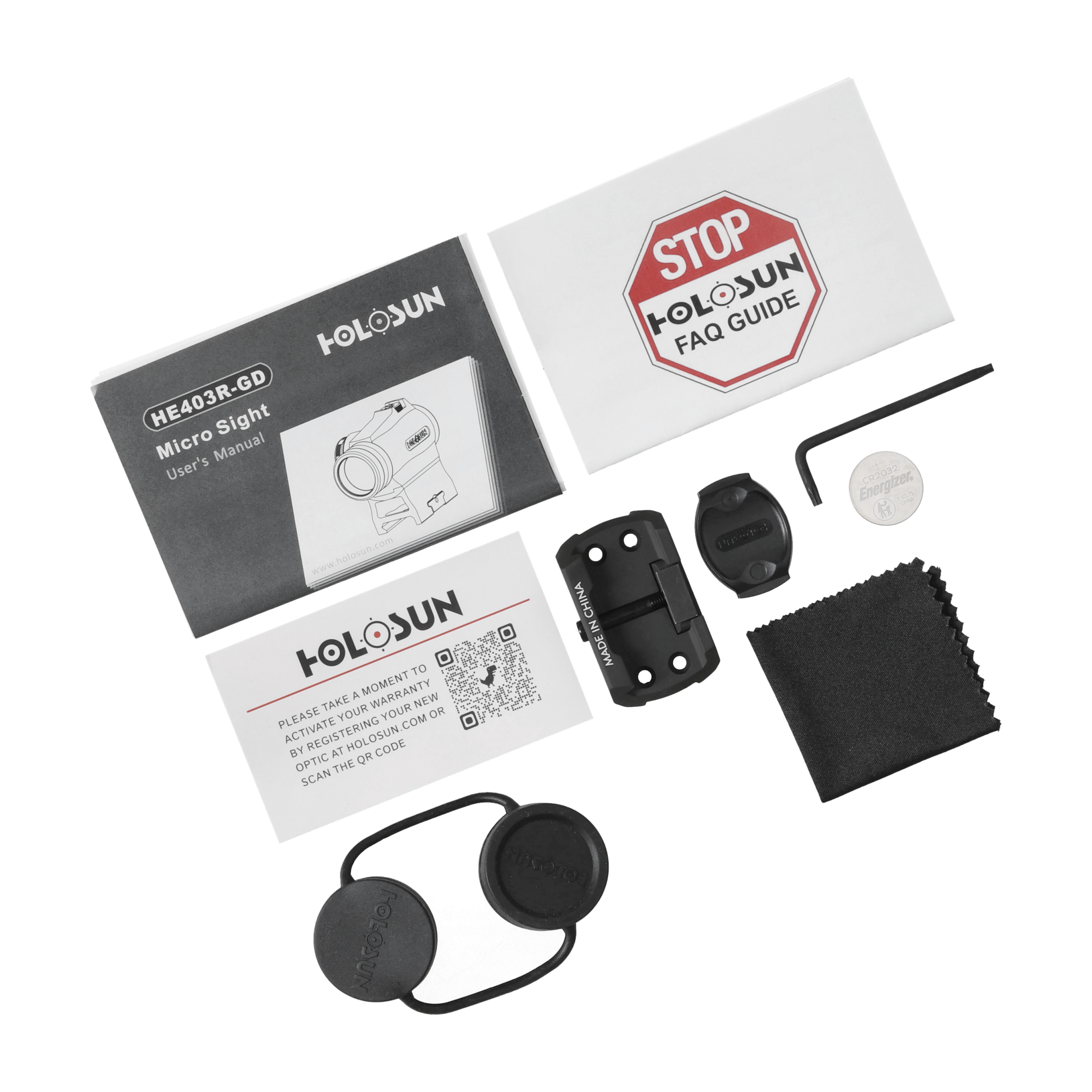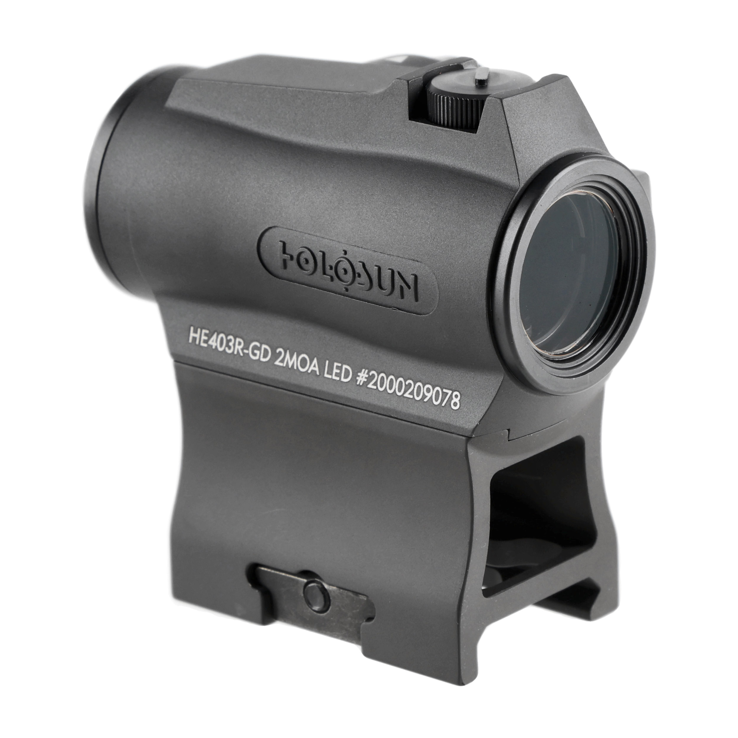 Korpus celownika wykonano z aluminium 6061-T6 metodą precyzyjnego frezowania. Urządzenie ma wytrzymałą i stosunkową lekką konstrukcję ważącą z montażem 1/3 Co-witness 173 g. Holosun HE403R-GD Gold Dot cechuje „stabilne trzymanie zera”, nie posiada błędu paralaksy, a jego układ optyczny zapewnia nieograniczoną odległość od oka, dzięki czemu może być wykorzystywany na strzelbach sportowych, karabinkach AR oraz broni myśliwskiej. W kolimatorze zastosowano soczewki pokryte wielowarstwowymi powłokami antyrefleksyjnymi, które zapewniają wysoką transmisję światła oraz czysty i ostry obraz pozbawiony błędu paralaksy. Układ sterujący i dioda są odporne na przeciążenie 1000 g, odrzut broni oraz warunki atmosferyczne, dzięki czemu urządzenie pracuje wydajnie i stabilnie na broni myśliwskiej i sportowej.