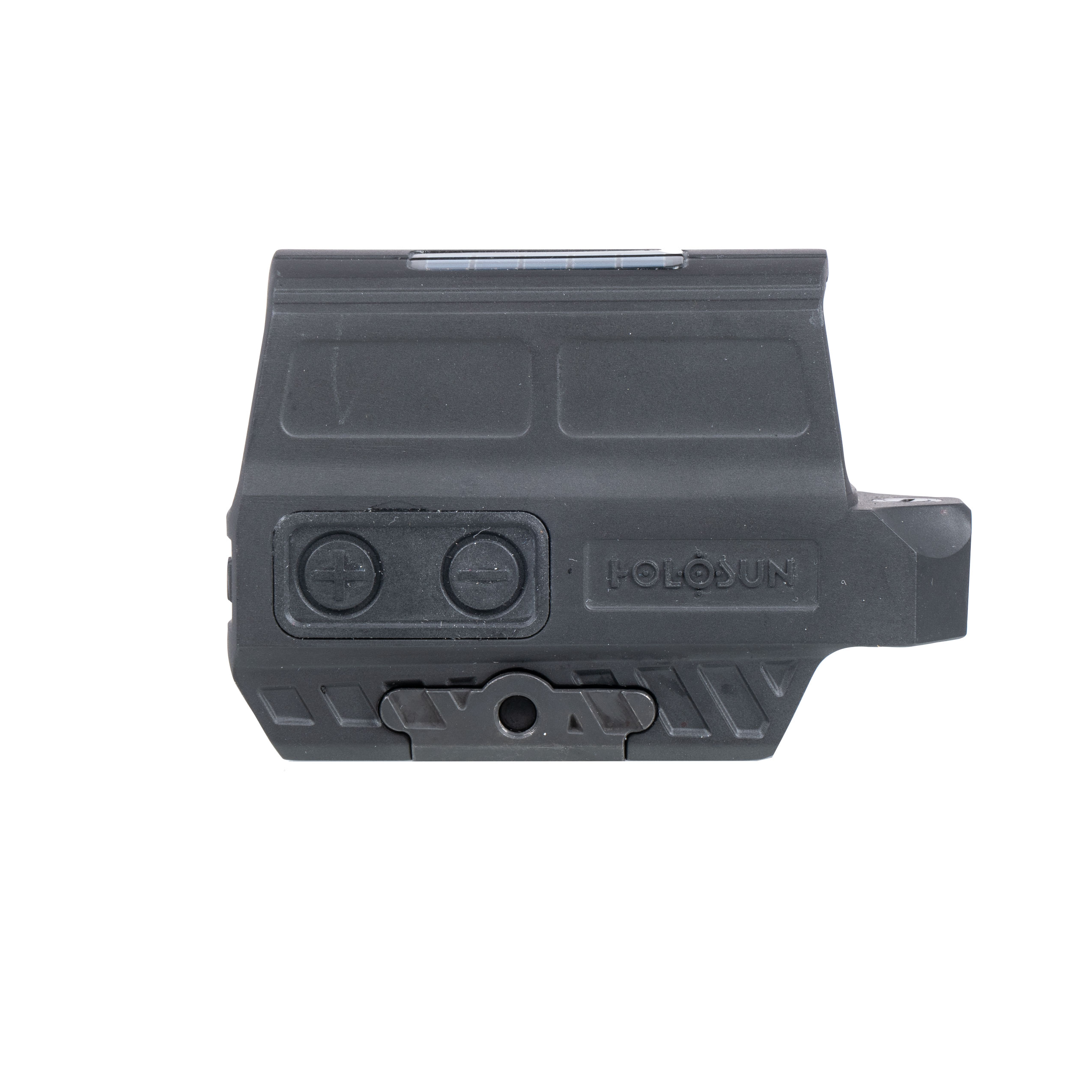 Korpus celownika wykonano z aluminium 6061-T6 metodą precyzyjnego frezowania, dzięki czemu jego konstrukcja jest odporna na przeciężenie aż 1000 g. Kolimator montujemy na broni z szyną Picatinny lub Weaver. Montaż ma wysokość absolute co-witness, co oznacza, że znak celowniczy kolimatora pokrywa się z linią przyrządów mechanicznych karabinu. W Holosun HE512C-GD zastosowano soczewki pokryte wielowarstwowymi powłokami antyrefleksyjnymi, które zapewniają wysoką transmisję światła oraz czysty i ostry obraz pozbawiony błędu paralaksy.