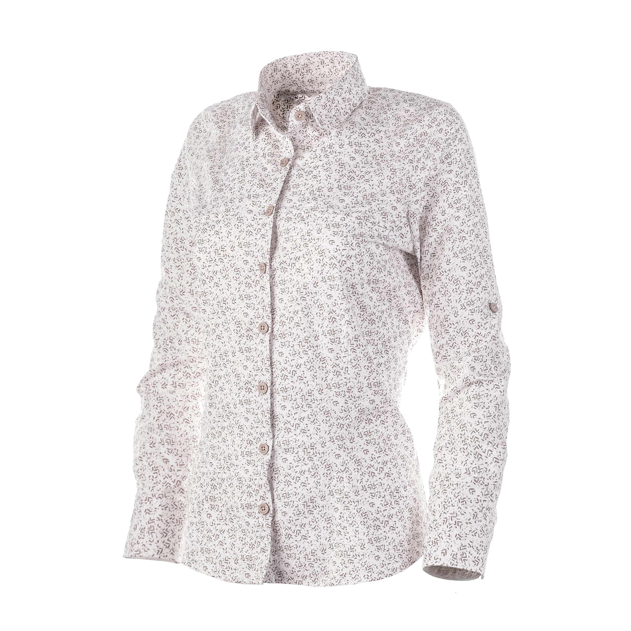 Model Cane to koszula damska z długim rękawem, uszyta z przewiewnej tkaniny bawełnianej. Dzięki temu zapewnia komfort noszenia i nie podrażnia skóry. Połączenie wygody z wyjątkowym, roślinnym motywem sprawia, że jest idealnym wyborem na oficjalne spotkania, jak i codzienne wyjścia.