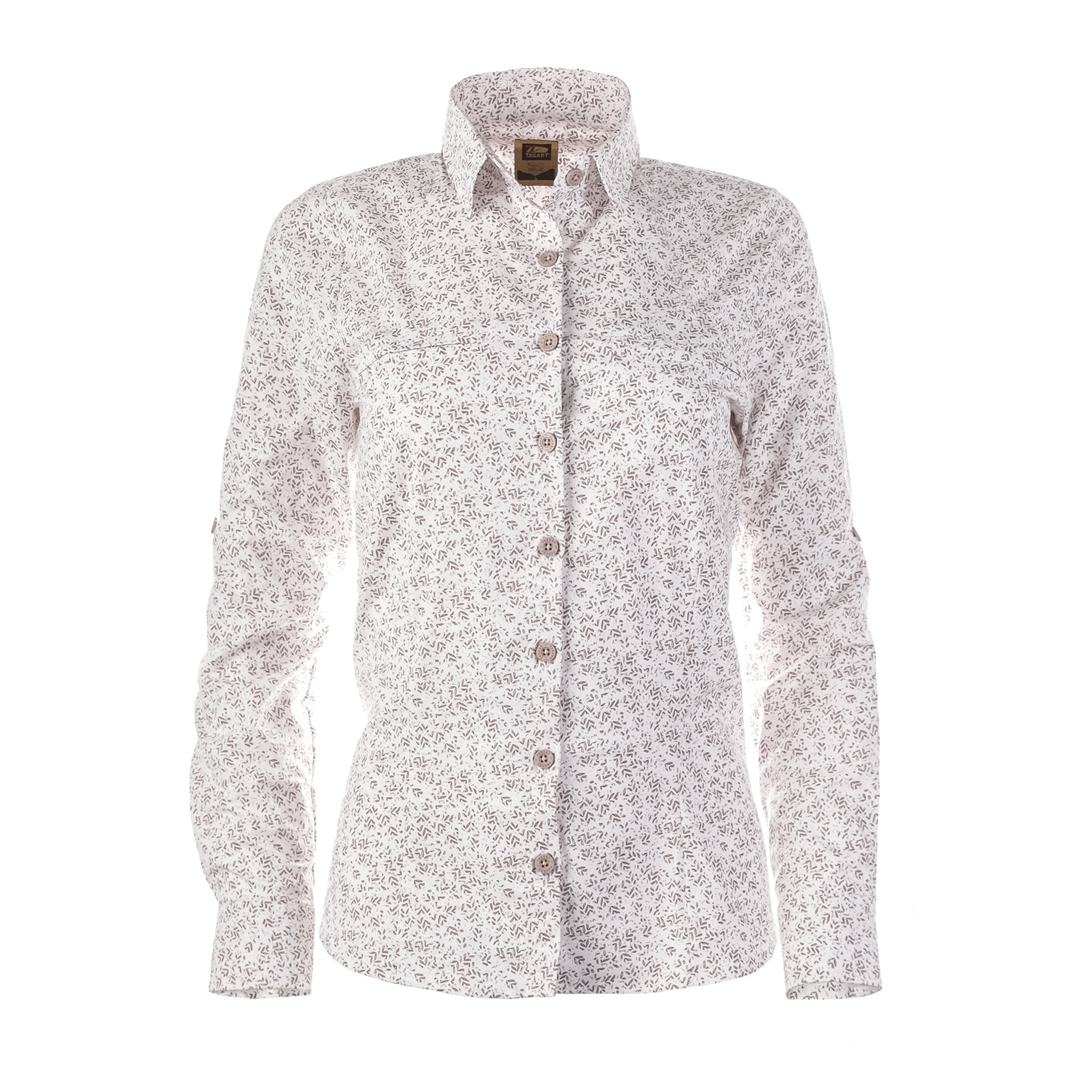 Koszula damska Tagart Cane z oryginalnym, roślinnym wzorem przyciąga uwagę i doskonale podkreśla zarówno osobowość, jak i sylwetkę. Wykonana z wysokiej jakości materiału, stanie się nieodzownym elementem garderoby na każdy wyjazd.