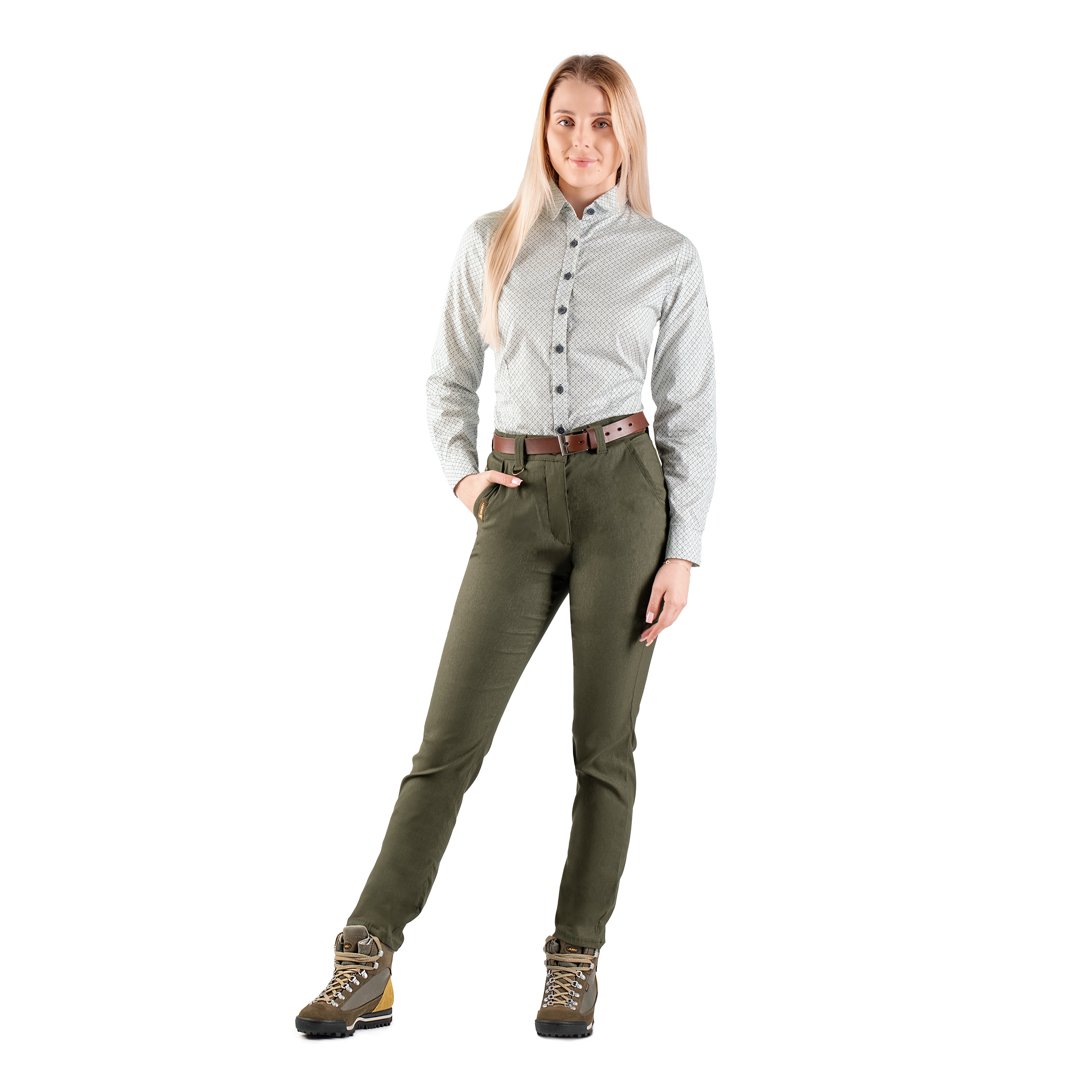 Uszyta z wysokogatunkowej bawełny, koszula Deerland nie tylko doskonale oddycha, ale również nie podrażnia skóry – nawet podczas całodziennego noszenia. Dzięki taliowanemu krojowi z łatwością podkreśla kobiecą sylwetkę, a delikatnie usztywniony kołnierzyk oraz regulowane mankiety dbają o estetykę i wygodę niezależnie od sytuacji. Koszula sprawdzi się zarówno na spotkaniach rodzinnych, jak i w trakcie spaceru po lesie.