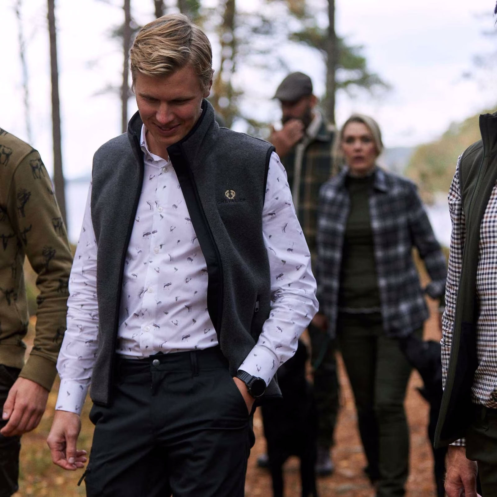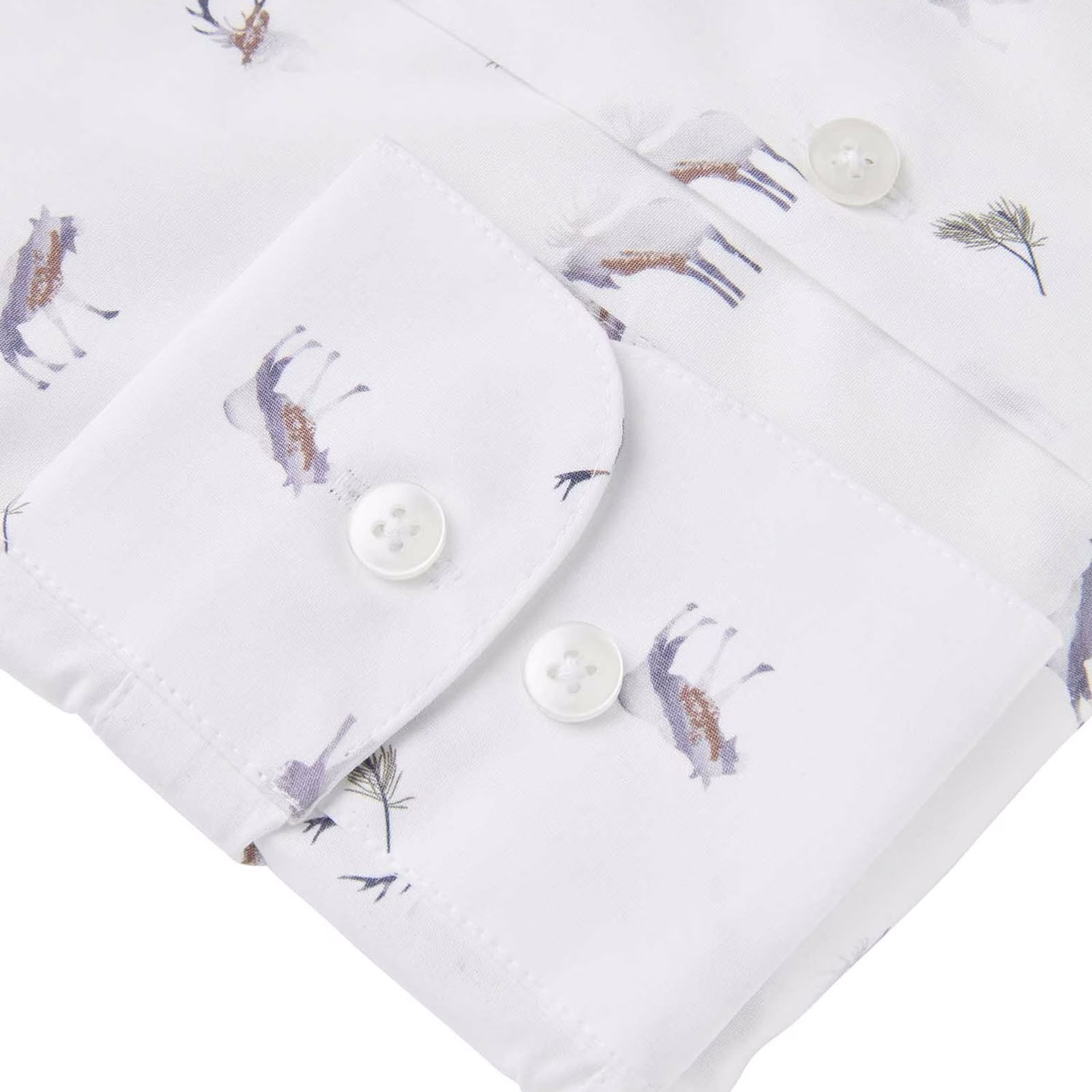Koszula ma intrygujący i unikalny nadruk, podkreślający jej myśliwski charakter. Model Danson lekko zwężano z tyłu, dzięki czemu świetnie leży pod swetrem lub marynarką. Koszula posiada również stylowy, dobrze dopasowany krój oraz guziki z imitacji masy perłowej. Dodatkowa para guzików utrzymuje kołnierzyk na swoim miejscu.