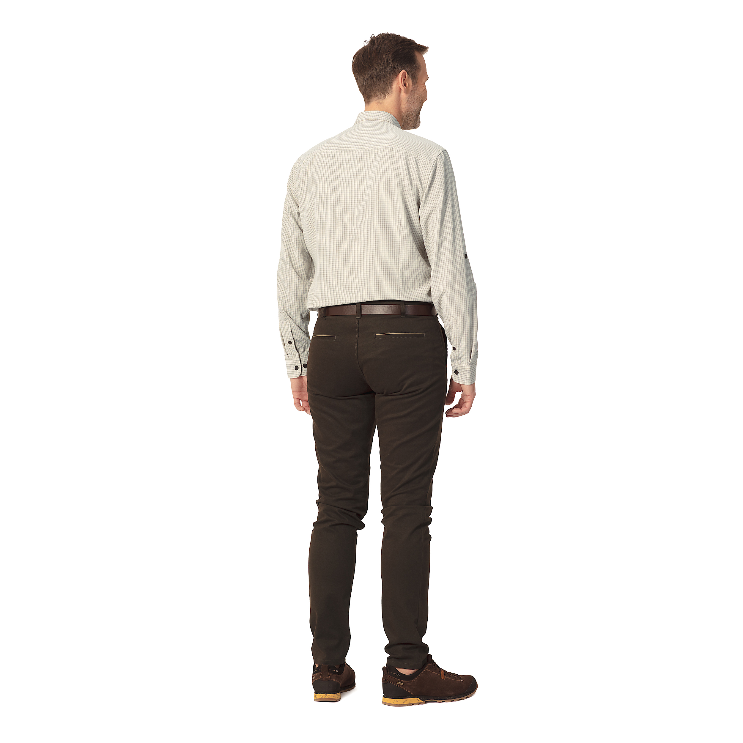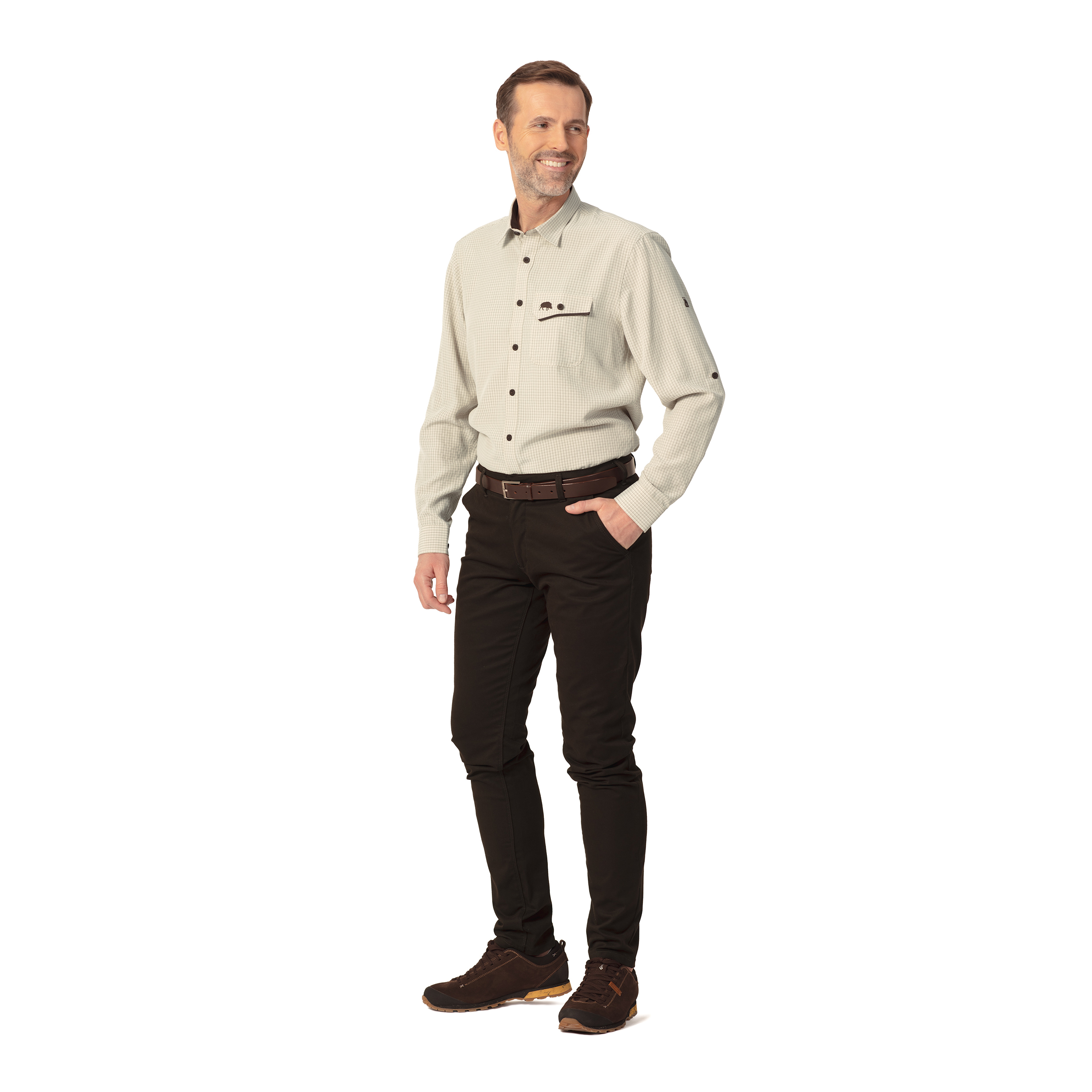 Koszula myśliwska Tagart Boar ma dopasowany krój typu slim, krótki rękaw, kołnierzyk typu kent wykończony od wewnątrz zamszem oraz kieszeń na piersi zapinaną na guzik. Koszula ma ponadczasową kratkę w beżowym kolorze, dlatego może być noszona jako element stroju codziennego, turystycznego, a także do pracy.