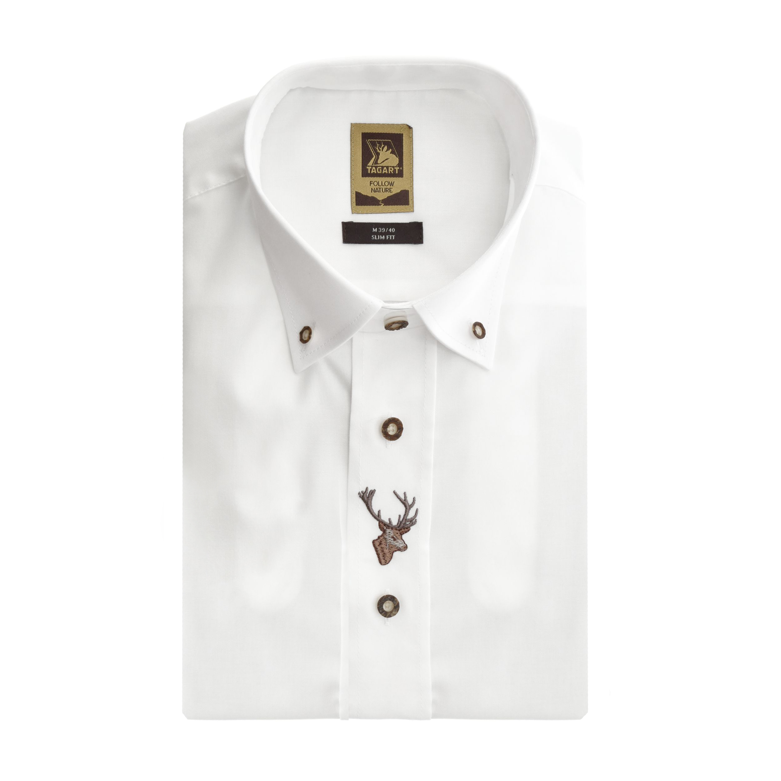 Elegancka męska koszula myśliwska wykonana z najwyższej jakości tkaniny bawełnianej w białym kolorze. Klasyczna forma sprawia, że koszula Tagart Rut Slim doskonale sprawdzi się na wszelkiego rodzaju formalne imprezy, polowania zbiorowe i tym podobne. Koszula w wersji Slim o bardziej dopasowanym do sylwetki kroju.