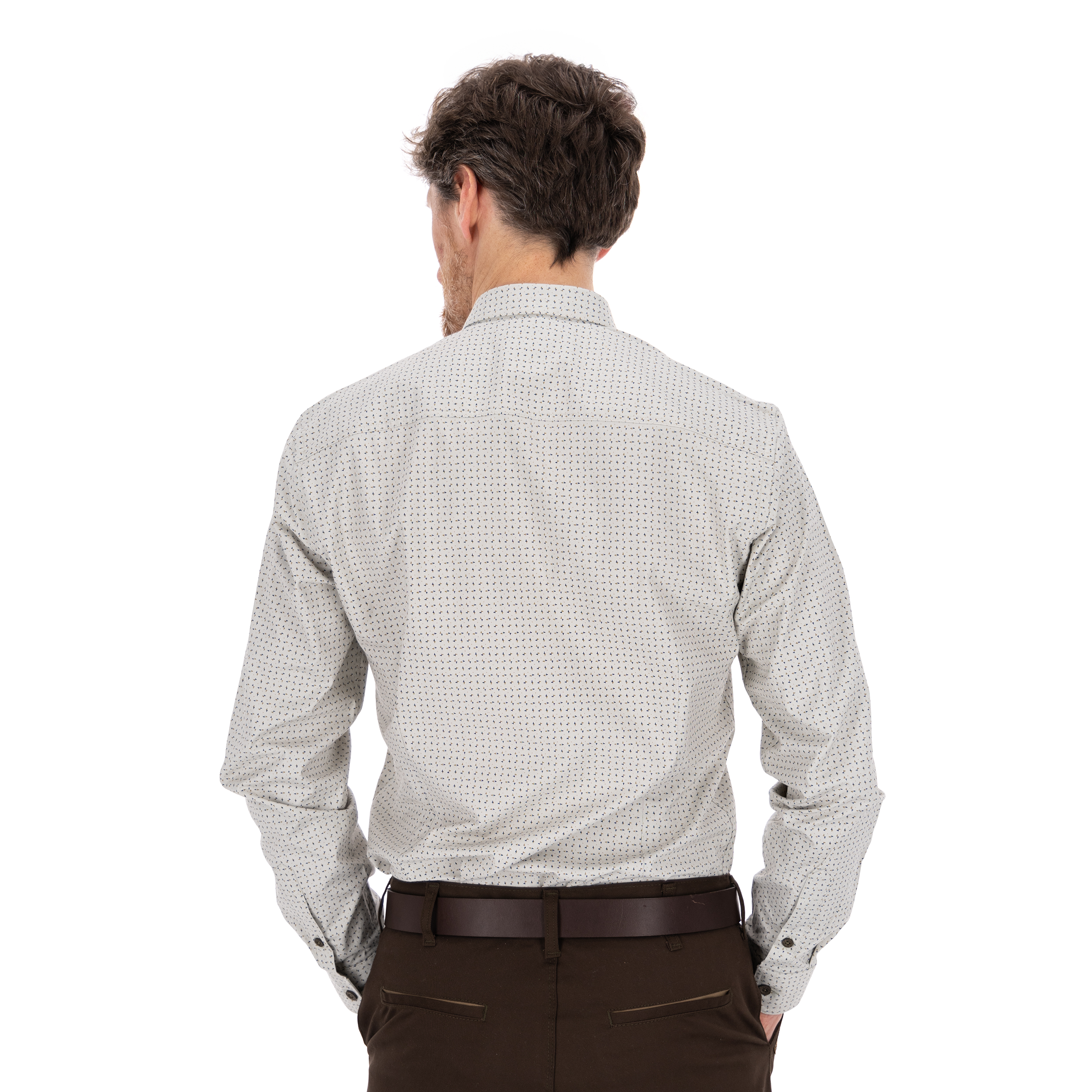 - Kontrastujące guziki – elegancki detal wyróżniający koszulę.
