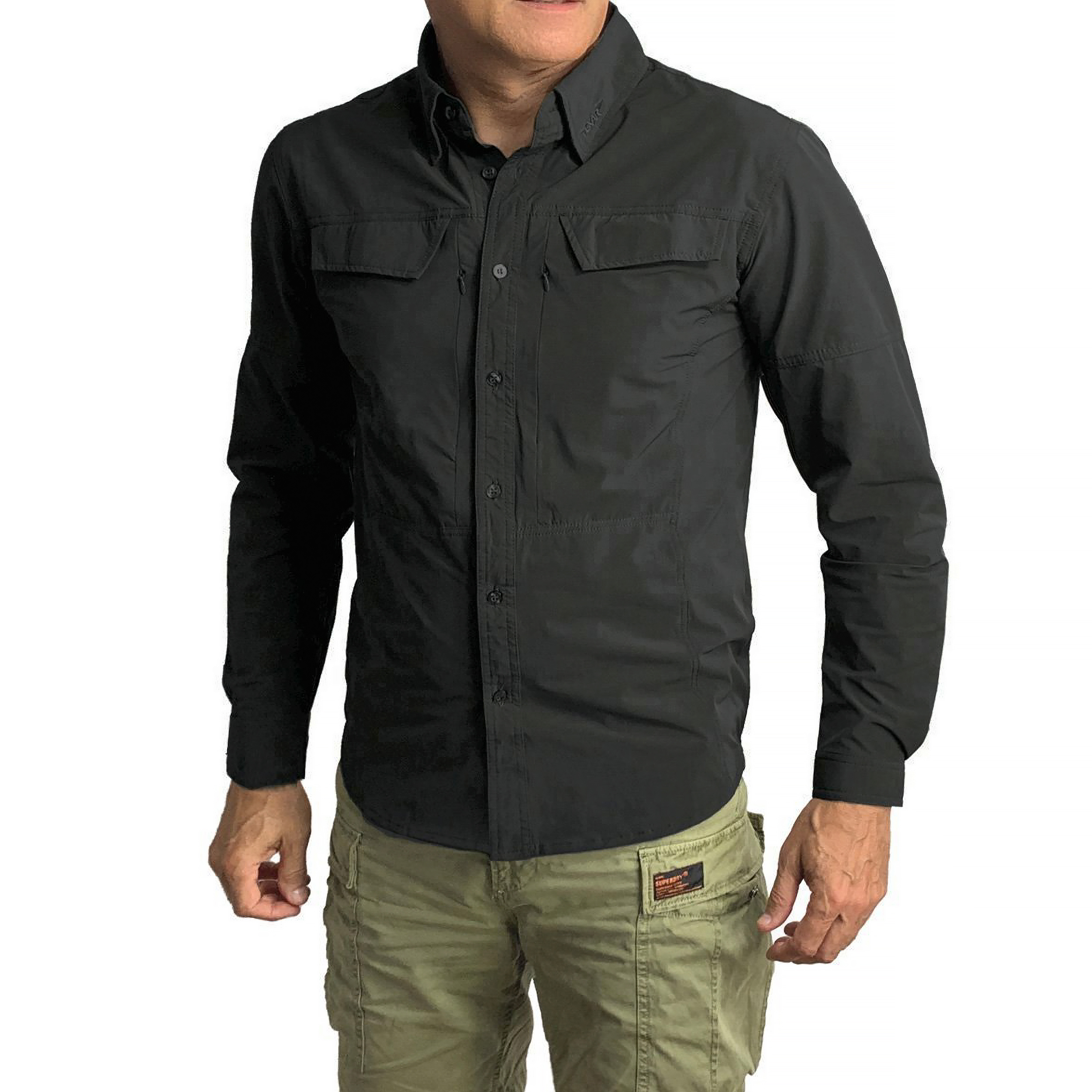 Komfortowa i funkcjonalna męska koszula taktyczna Texar, wykonana z wysokiej jakości materiału, połączenia nylon (90%) i  spandex (10%), sprawdzi się podczas różnych zadań, zarówno w mieście, jak i w plenerze.