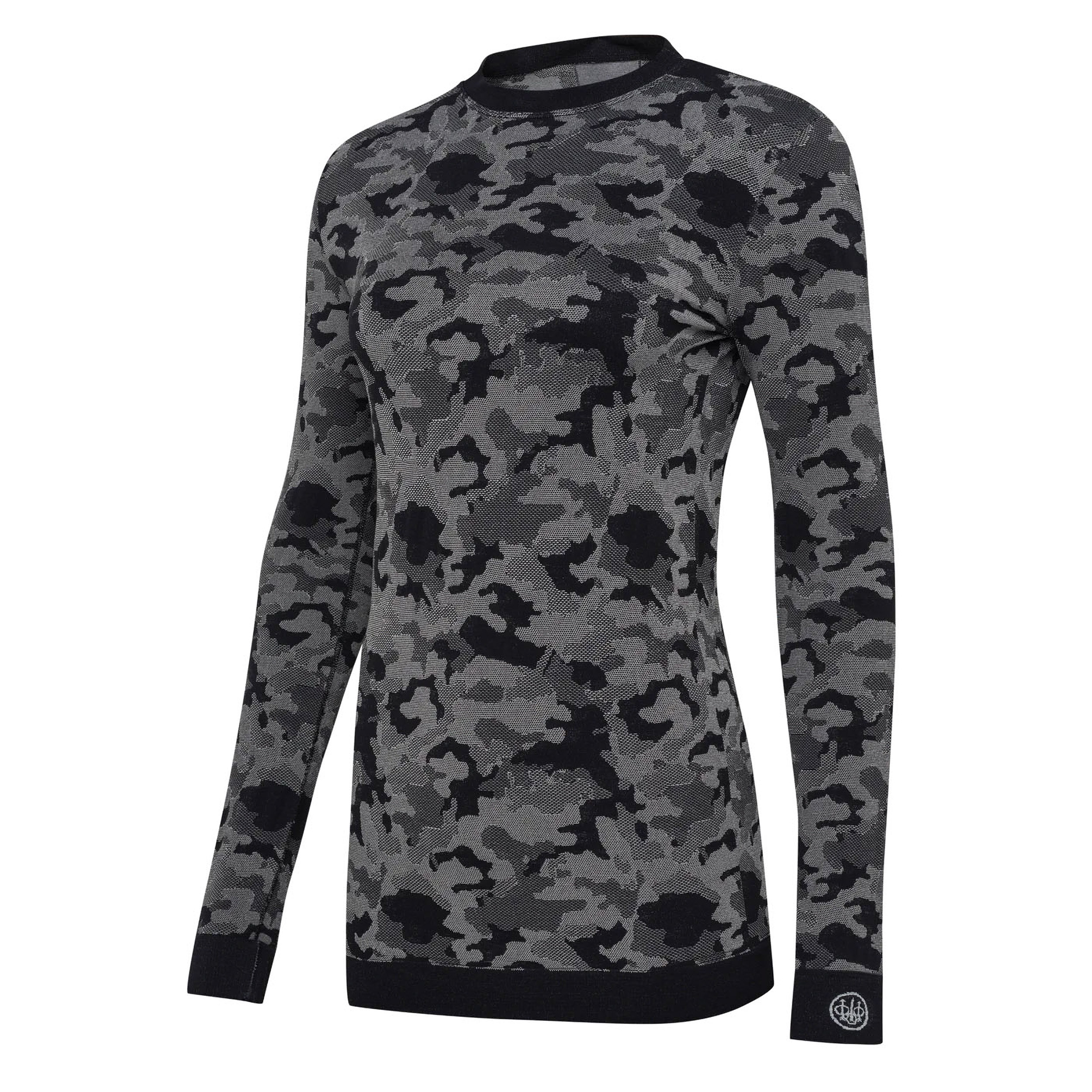 Koszulka damska Beretta LeSaut Sweater to dopasowana odzież z długim rękawem przeznaczona dla Pań. Ma za zadanie wspomagać dynamiczne poruszanie się podczas zawodów sportowych oraz rygorystycznych treningów na świeżym powietrzu. Odzież została tak zaprojektowana aby dopasować i wyeksponować kobiecą sylwetkę. Dzięki charakterystycznej kolorystyce i specjalnej obróbce tkanin, może ona posłużyć do polowań na otwartej przestrzeni oraz jako strój do aktywności sportowej. Model jest w kolorze ciemnego kamuflażu.