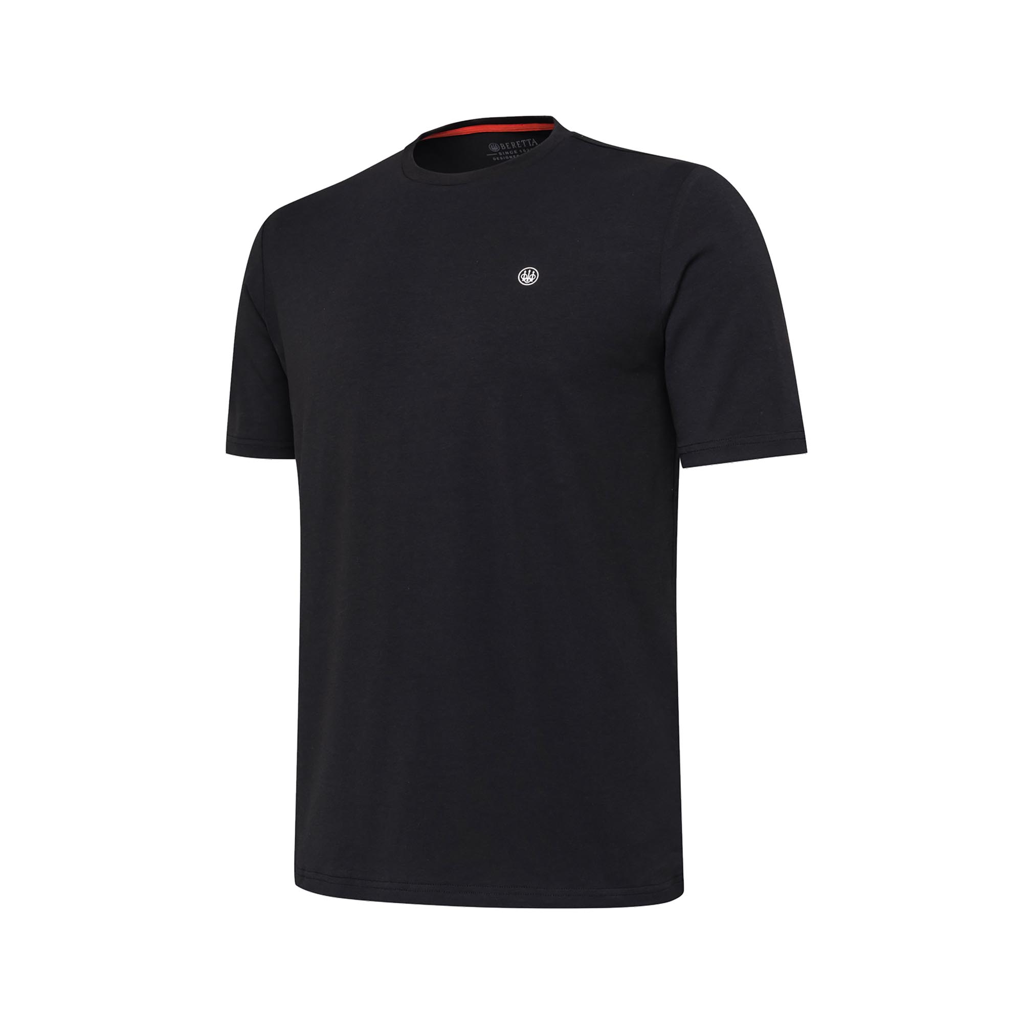 Klasyczny T-shirt nawiązujący do tego legendarnego, włoskiego producenta broni Beretta w kolorze czarnym. Koszulka męska z krótkim rękawem o regularnym kroju została wykonana z miękkiej bawełny jersey o gramaturze 180 g.