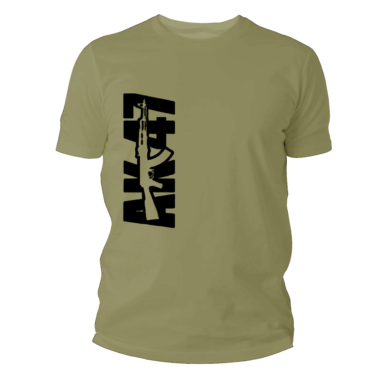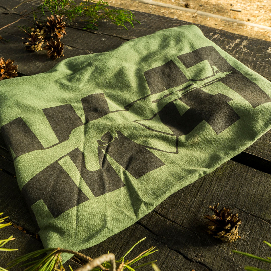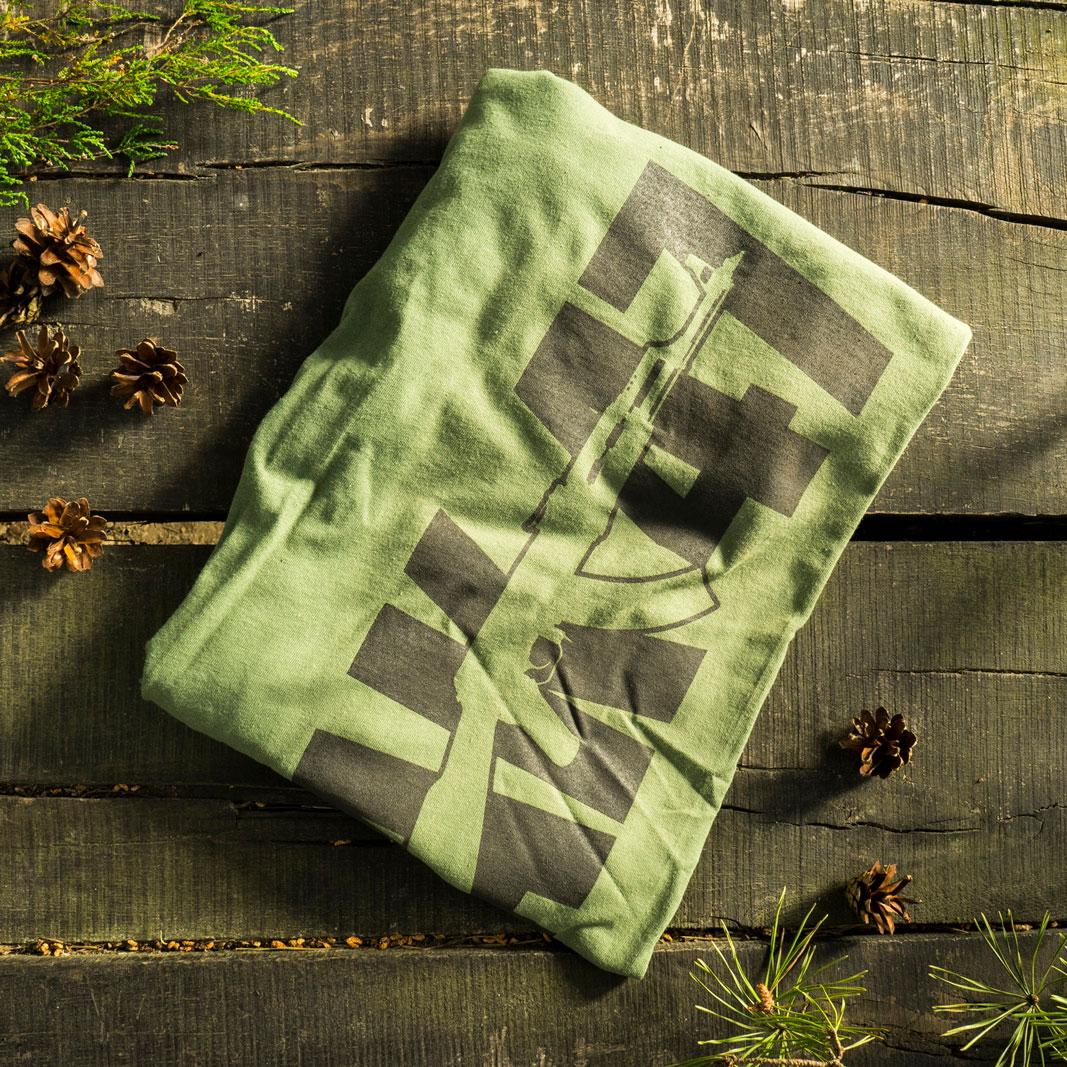 Na froncie koszulki, w prawej części zlokalizowany jest czarny nadruk AK 47 o wysokiej jakości wykonania, która zadowoli nawet najbardziej wymagających klientów. Koszulka dedykowana jest pasjonatom militariów, którzy kultowy karabin AK 47 chcą mieć zawsze ze sobą.