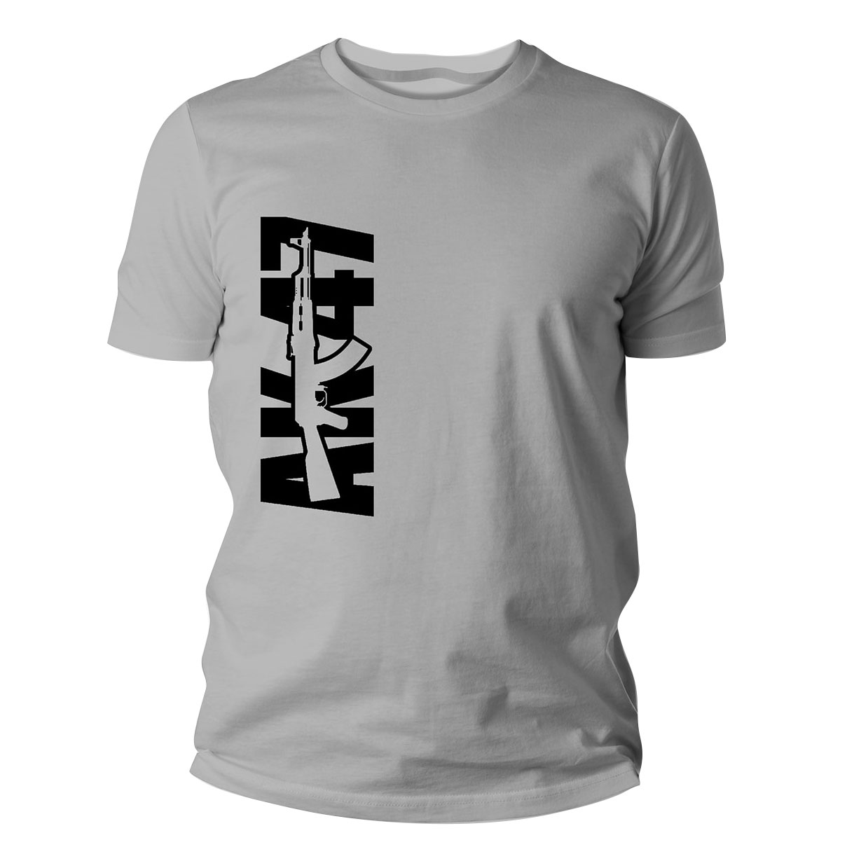 Na froncie koszulki, w prawej części zlokalizowany jest czarny nadruk AK 47 o wysokiej jakości wykonania, która zadowoli nawet najbardziej wymagających klientów. Koszulka dedykowana jest pasjonatom militariów, którzy kultowy karabin AK 47 chcą mieć zawsze ze sobą.