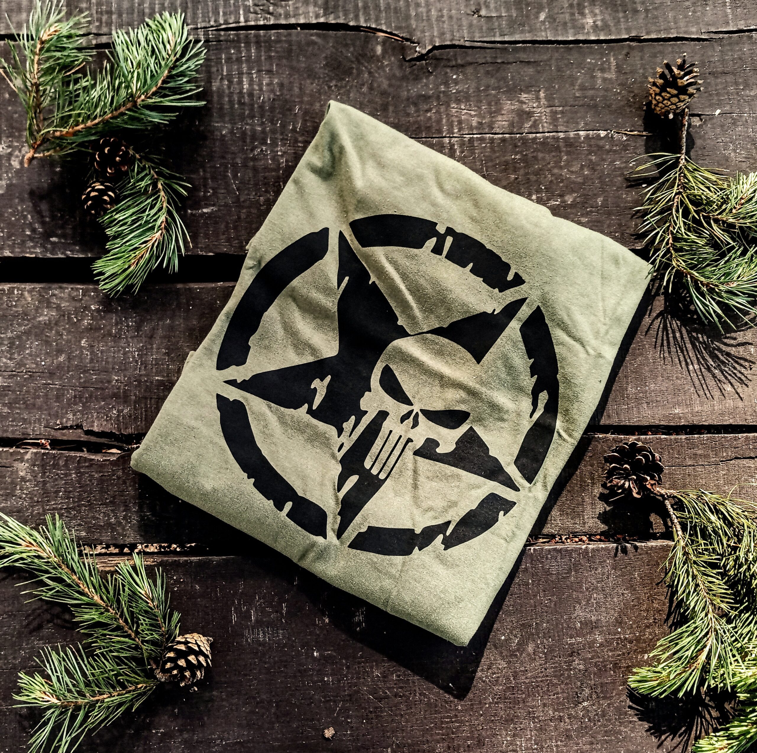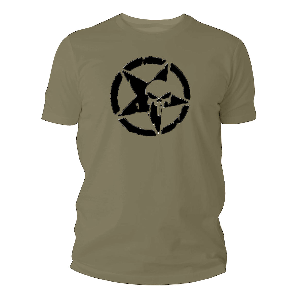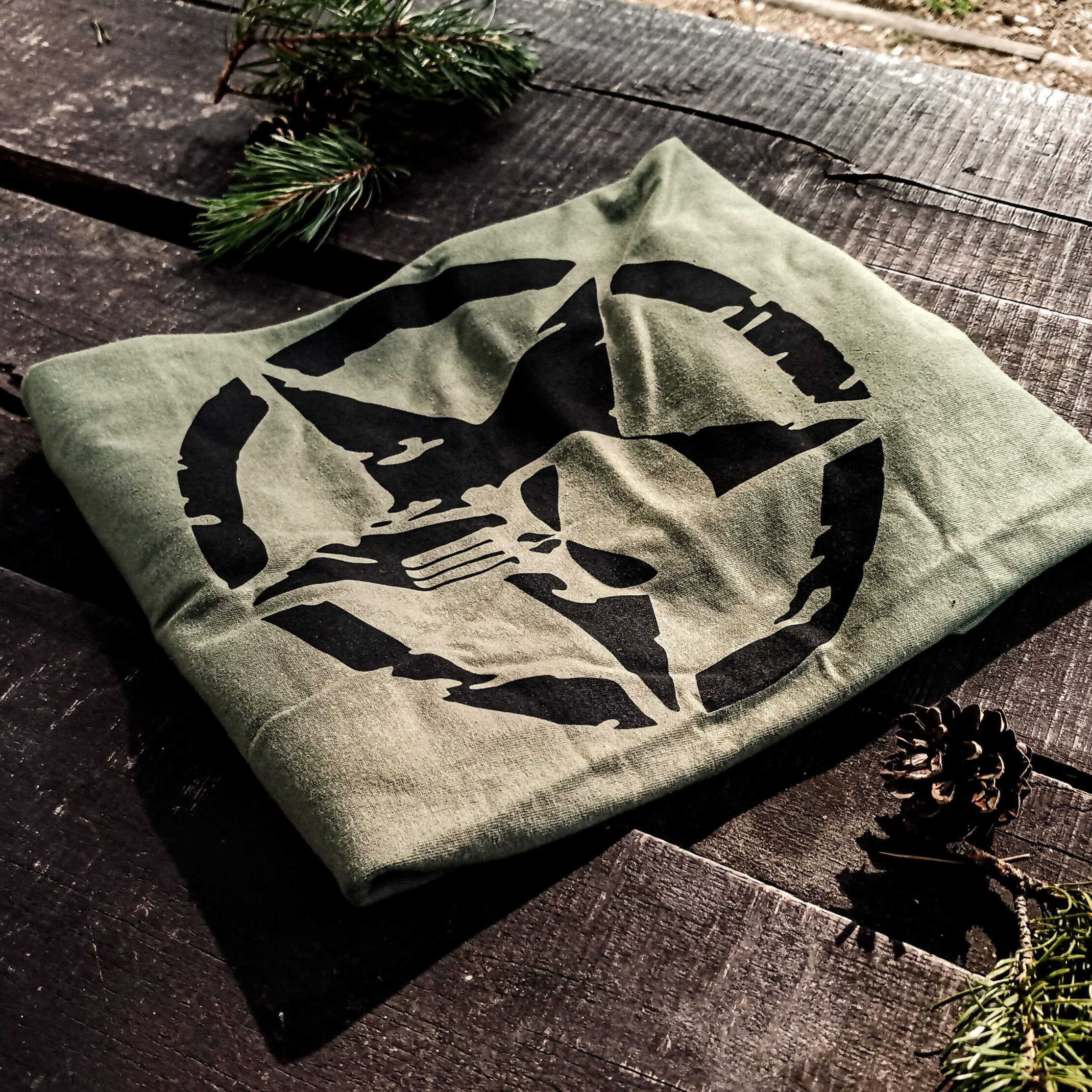 TigerWood Military Punisher oliwkowa to bawełniana koszulka męska z nadrukiem Punisher. Doskonała na co dzień, świetnie sprawdzi się w połączeniu z każdym krojem spodni. TigerWood Military Punisher to zmilitaryzowana wersja koszulki z nadrukiem postaci.