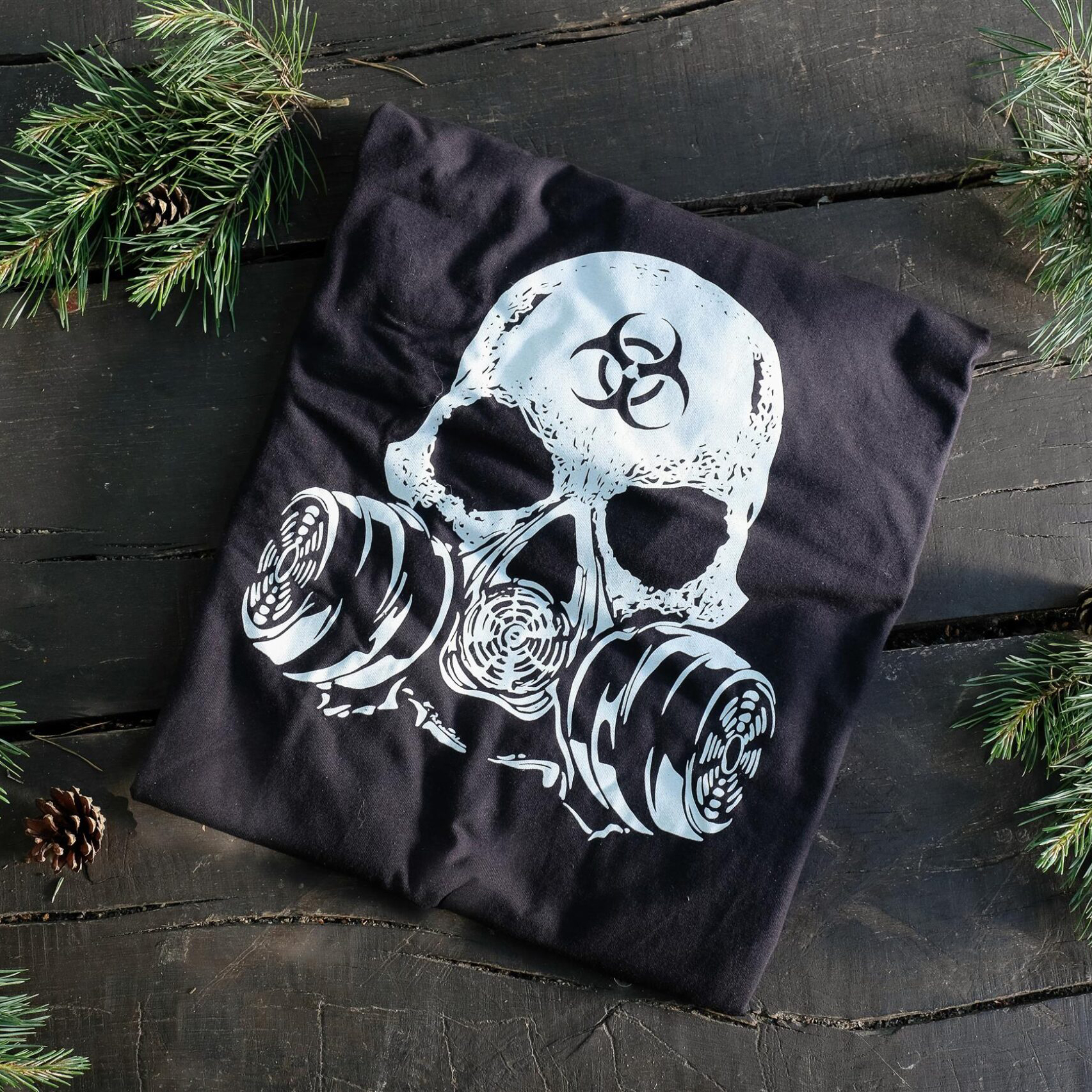 Na klatce piersiowej znajduje się duży, biały nadruk przedstawiający czaszkę w masce gazowej z widocznym na czole symbolem zagrożenia biologicznego. Koszulka przyciągnie uwagę każdego preppersa, który zawsze przygotowany jest na potencjalnie niebezpieczne sytuacje. Niezależnie od tego czy jest to brak prądu, czy wybuch nuklearny. Koszulka TigerWood Plague świetnie sprawdzi się jako dopełnienie postapokaliptycznej garderoby.