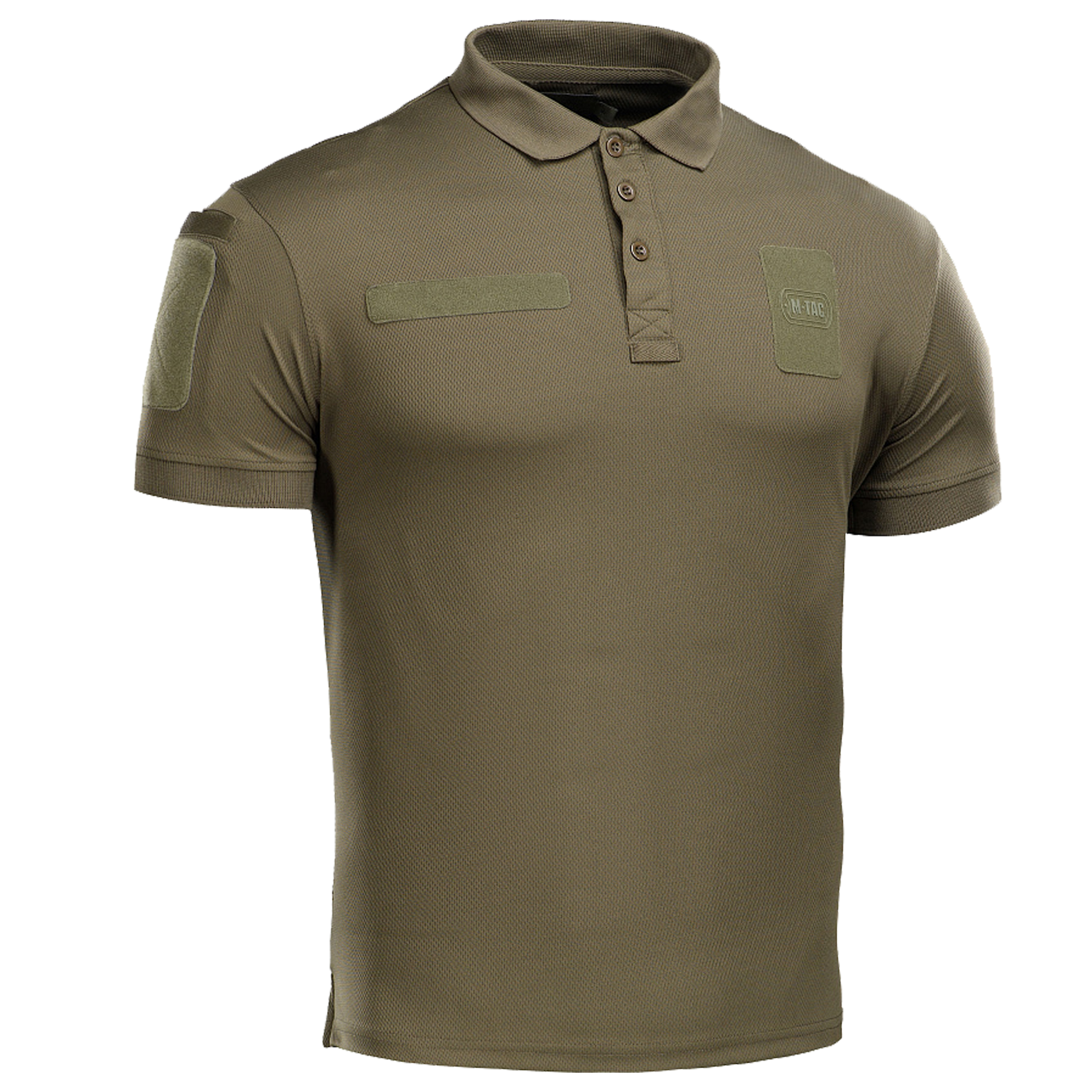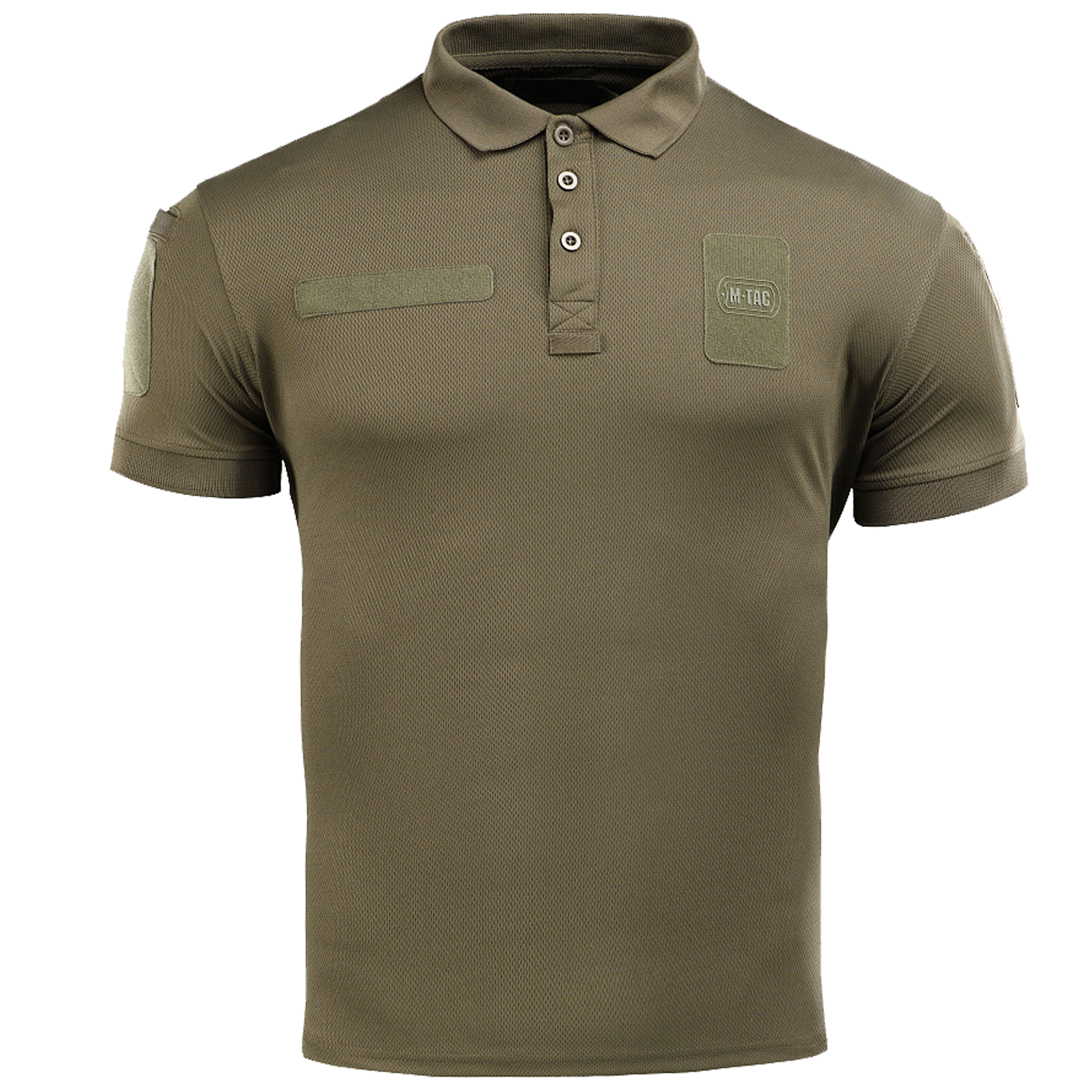 W odróżnieniu od klasycznej koszulki polo, wersja taktyczna M-Tac ma dwie kieszenie na rękawach, panele velcro (2 na piersi, 2 na rękawach, 1 na karku) oraz szlufki na barku do mocowania mikrofonu potocznie nazywanego gruszką. Polo ma wywijany kołnierzyk i dekolt zapinany na 3 guziki zakończony patką na okulary.