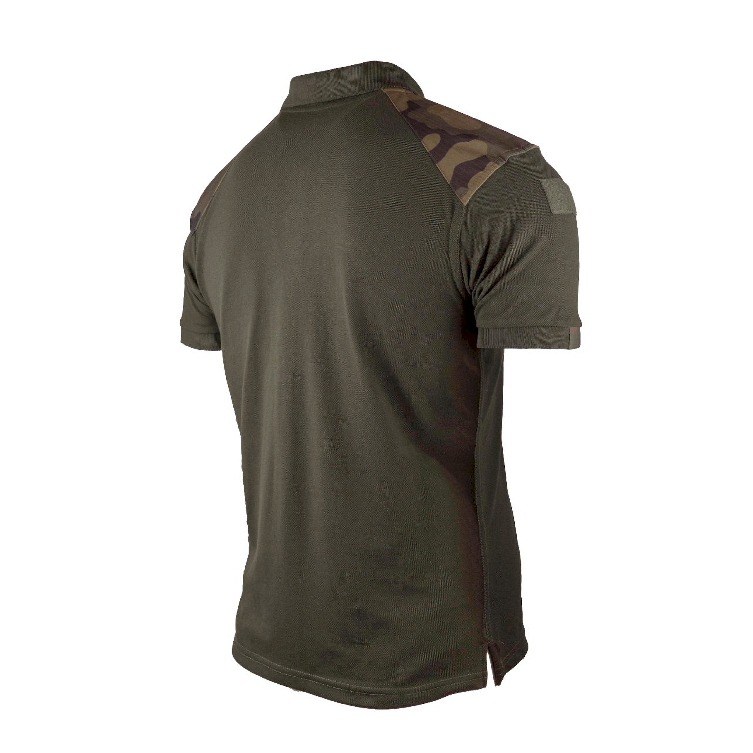 Uniwersalna i wygodna męska koszulka polo Texar WP z kołnierzykiem. Została uszyta z mieszanki miękkiej bawełny oraz wytrzymałego poliestru (50/50%). Dzięki dopasowanemu krojowi, który nie ogranicza ruchów, idealnie nadaje się do noszenia na co dzień, jak i podczas różnego rodzaju aktywności outdoorowych czy sportowych. Model jest w kolorze oliwkowym z panelami w kamuflażu WP.