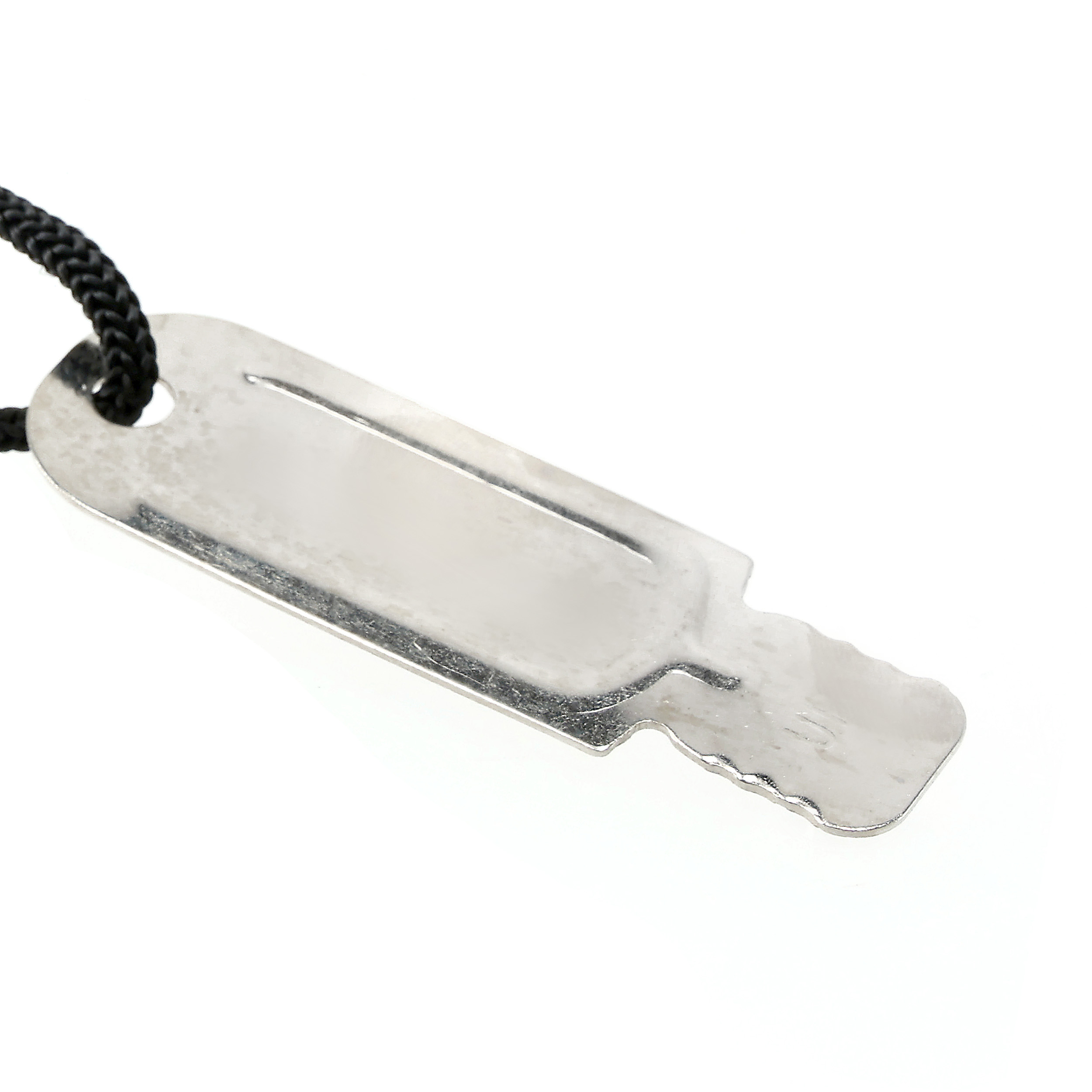 - Metalowy iskrownik – dołączony na lince paracord, z ząbkowaną powierzchnią ułatwiającą krzesanie iskier.