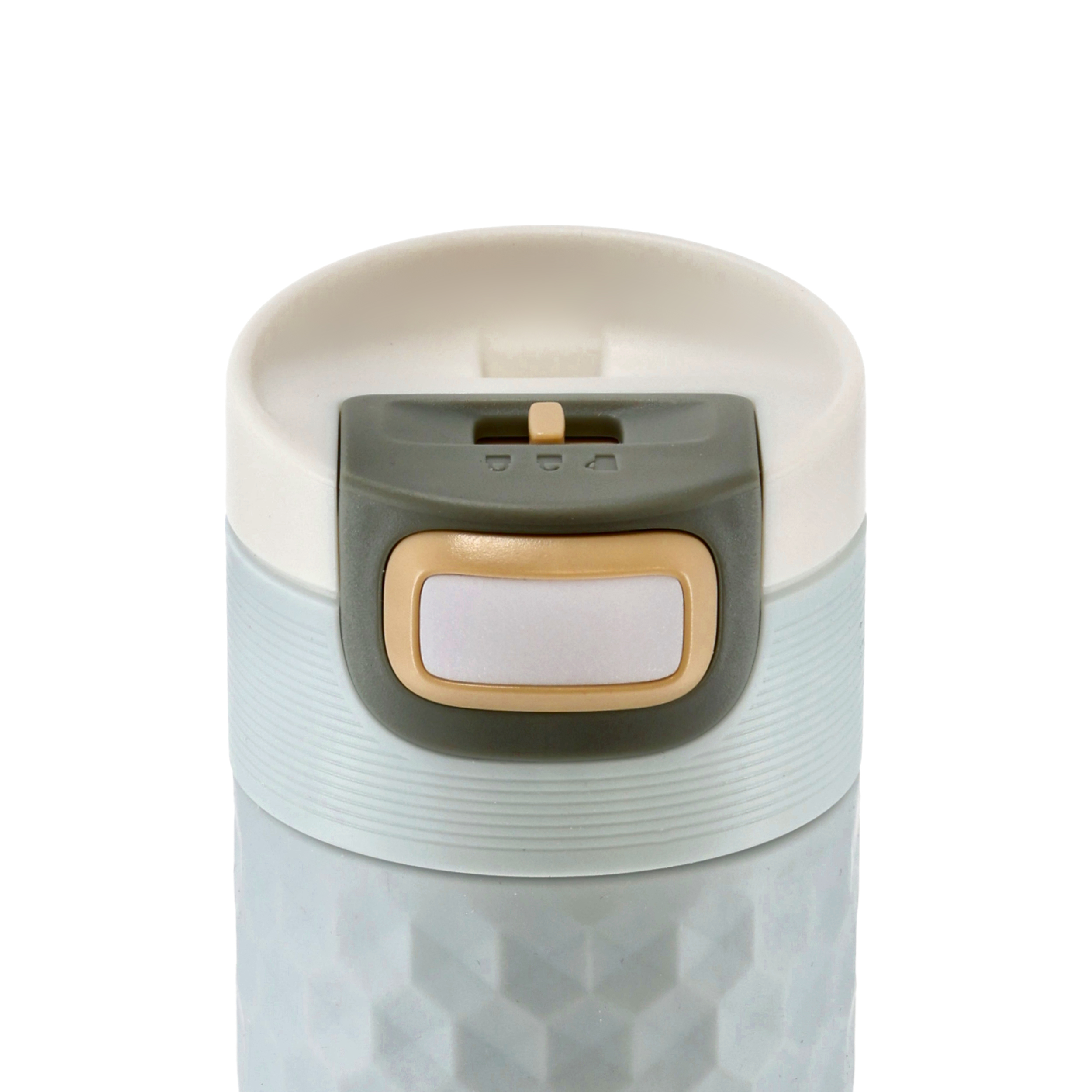 Nakrętka 3 w 1 – pomysłowa nakrętka umożliwia bezpieczne i wygodne korzystanie z kubka w każdej sytuacji. Suwak znajdujący się w szczytowej części nakrętki należy ustawić w jednej z trzech pozycji: