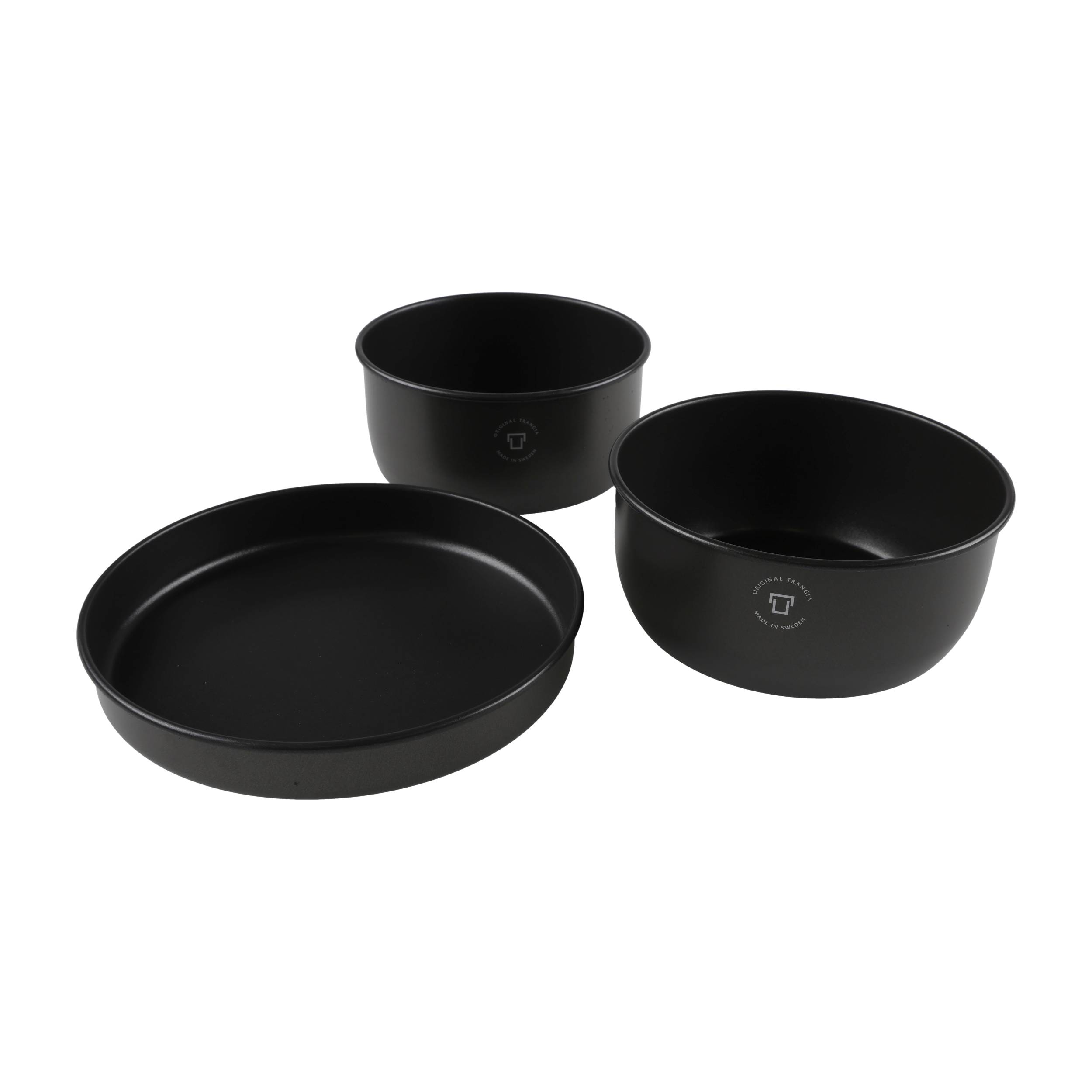 - Zestaw zawiera dwa garnki o różnych pojemnościach i patelnię.